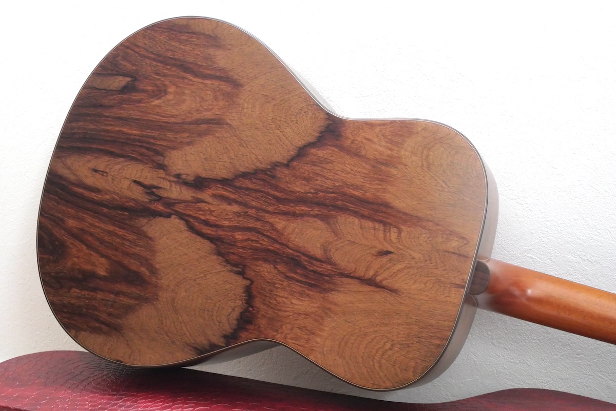 インパクトのあるワイルドな杢を持つ、ホンジュラスローズウッドバック&サイドモデルです。