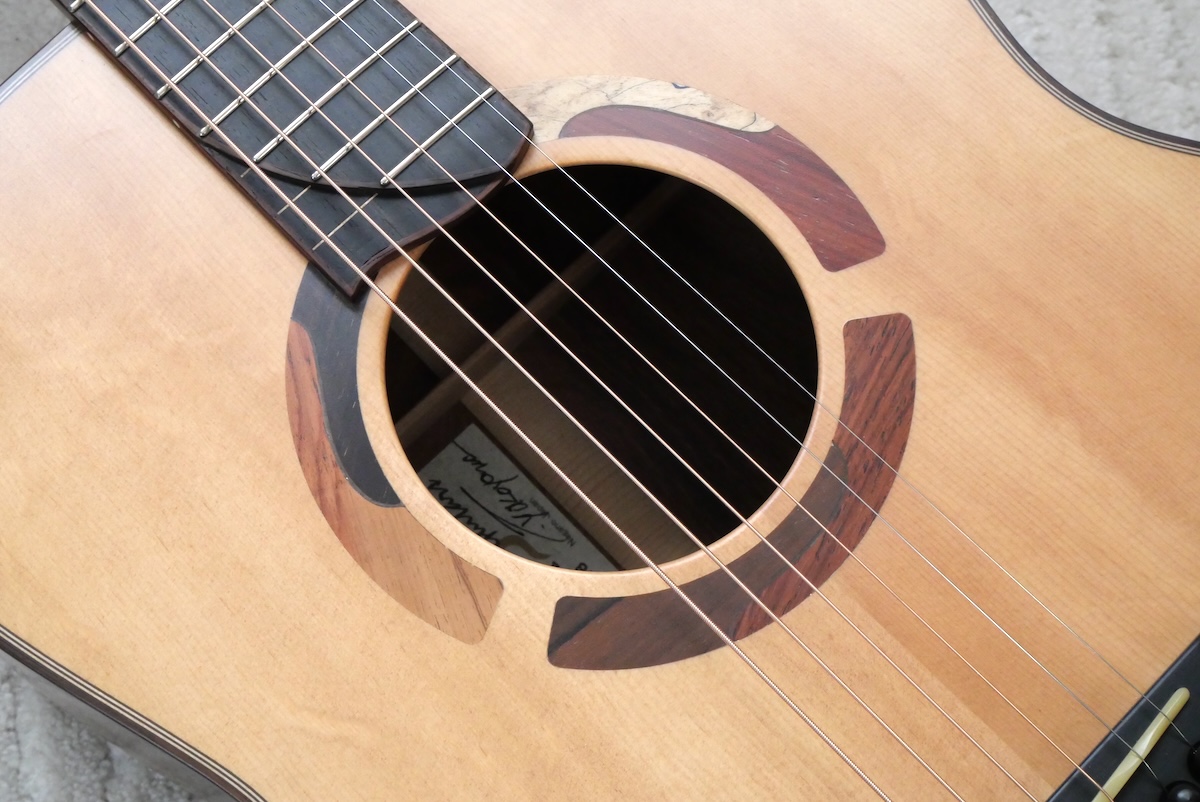 ボディトップにはベアクロウの入ったシトカスプルースをセレクト。シトカらしい芯のあるサウンドです。