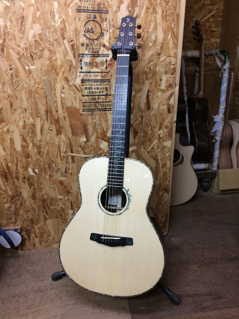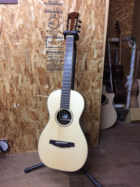 先生が自分の楽しみにコツコツ作っていたギターをU様に気に入っていただき、私が強奪しご購入いただきました。先生、ごめんね。