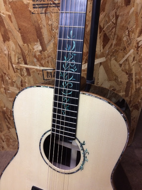 先生からお渡しいただきました。このギターインレイもすごいんです。もちろん小川さんの作品ですよ。