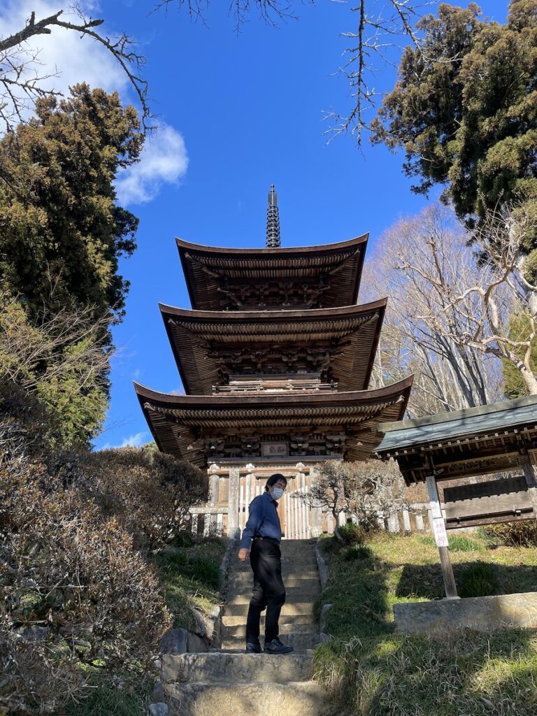 「このあたり国宝があるんだよな。」の先生の言葉に途中寄り道。長野県小県郡青木村にある大法寺にとても立派な三重の塔がありました。これは本当に立派。知らなんだ。