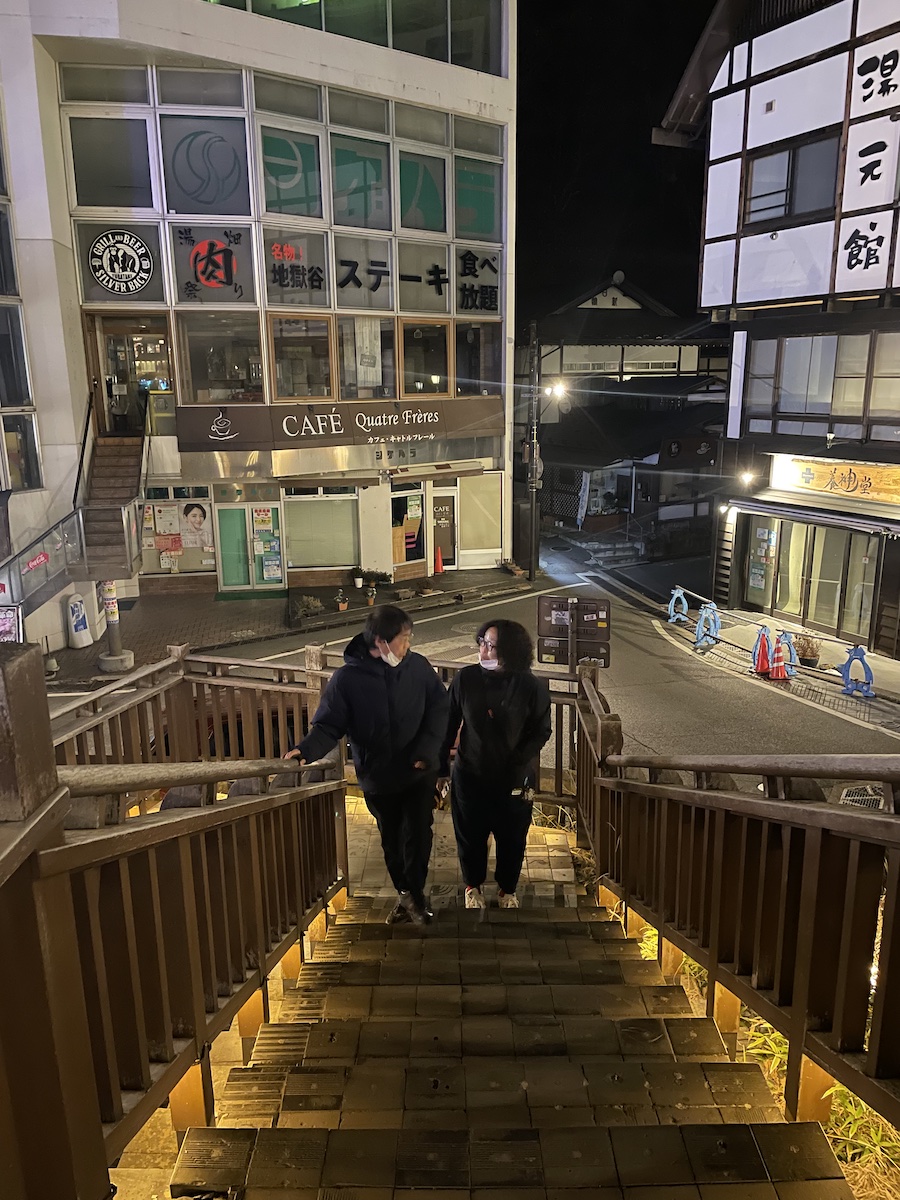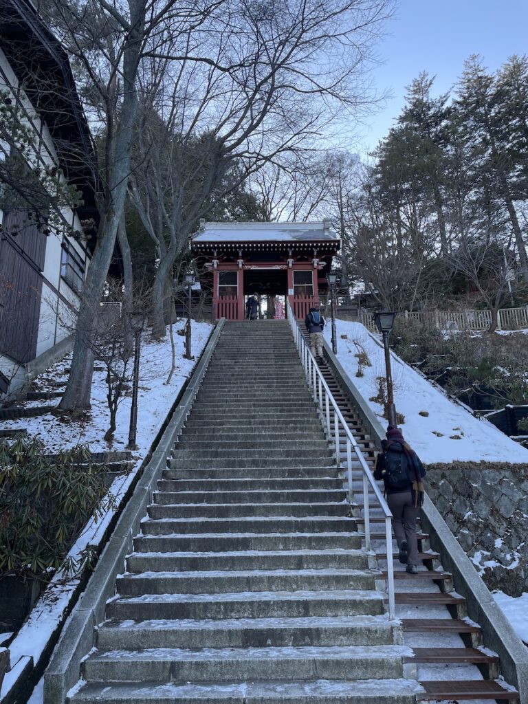 まずは湯畑を堪能して、光泉寺へお参り。登りの石段はガッチガッチに凍っていました。海外からの観光の方がツルツルと滑っておりました。危ない、危ない。