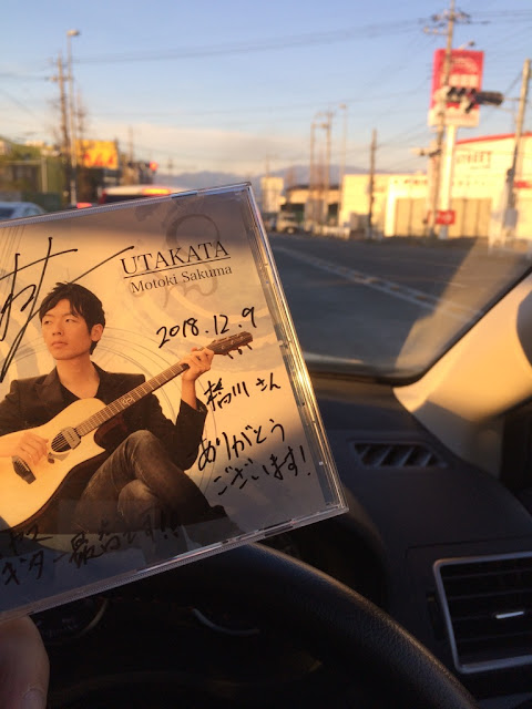 今回車中のBGMは、今年のハンドクラフトギターフェスでも演奏してくれた佐久間 元樹さんの新作CD。