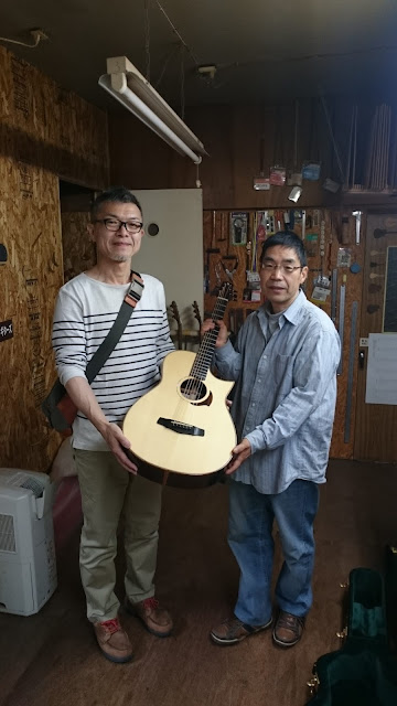 今回のメインは富山県 N様のオーダーモデルのお渡し。お仕事がお忙しいN様、なかなか完成したギターを受け取れるタイミングがなかったようなので「念願の工房!」と言えるでしょう。