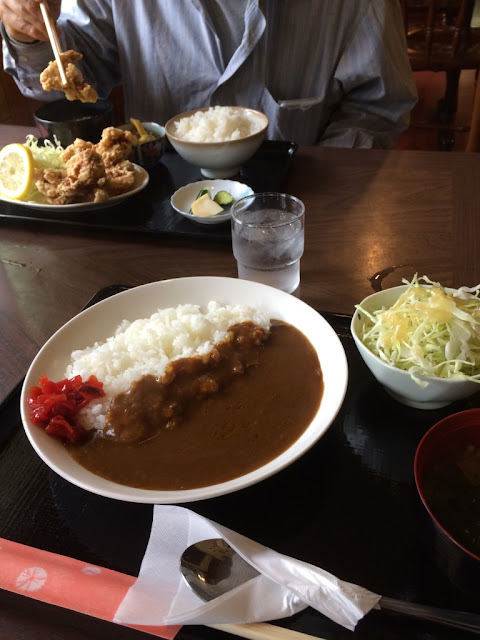 今日もいっぱい車が停まってる。やっぱり人気なんですね。私はおしとやかにカレーライス。お二方は唐揚げ定食。