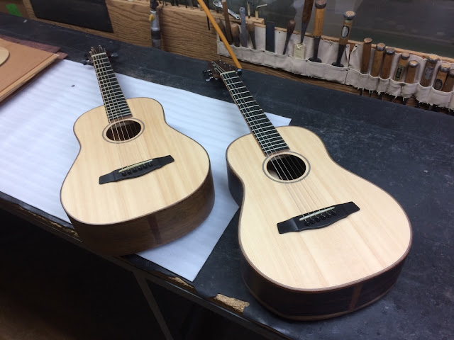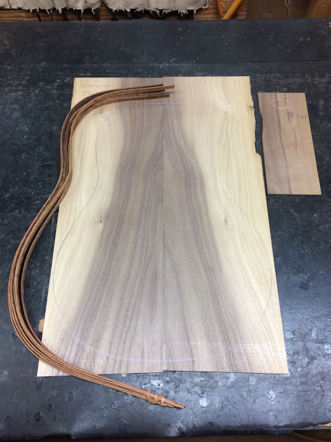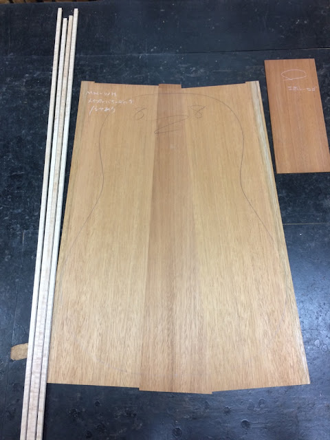 先生は材料をガサゴソして、仕様が決定したのでミニを作りたそう。とりあえず下記の材料で3本製作することになりました。トップ材は全てホワイトスプルースです。
