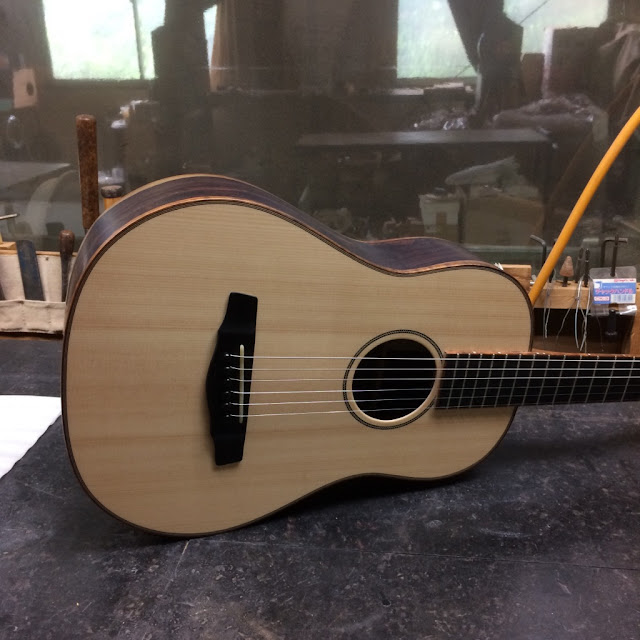 前のプロトタイプでほとんどの項目はクリアしていましたが、駒&ブレーシング位置を少し上げて、テンション感や鳴り感のバランスをとりたかったのと、それに伴いレキントチューニングも可能になるかなと期待もしていたわけです。