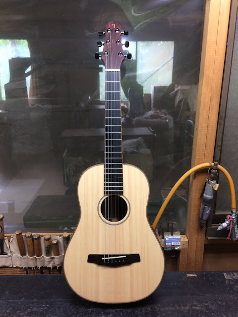 当初、カマティロでミニ作ったらどうなるんだろう?と思っていたた部分もありますが、全体のバランス、ホワイトスプルーストップ、艶消しの塗装も相まって、出音もとても美しい。期待以上の完成度ですね。