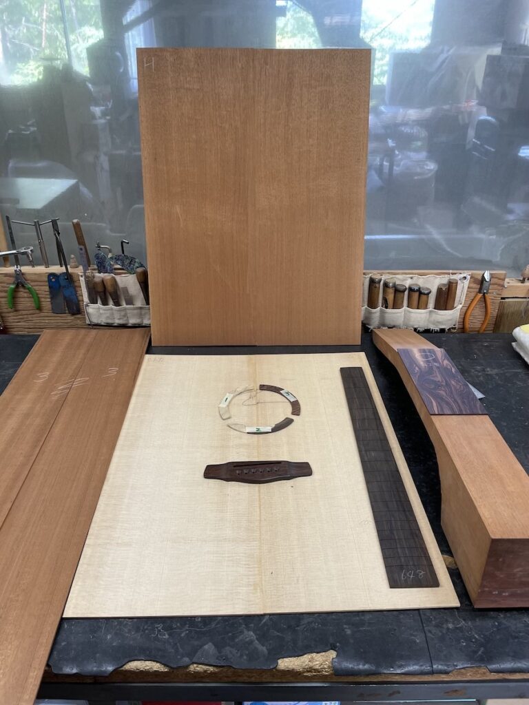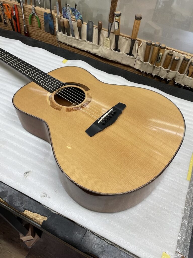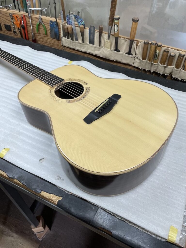 お望みの音の傾向から、「シトカスプルース × ホンジュラスマホガニー」があっているのではないかな?と思っていましたが、ドンピシャだったようです。