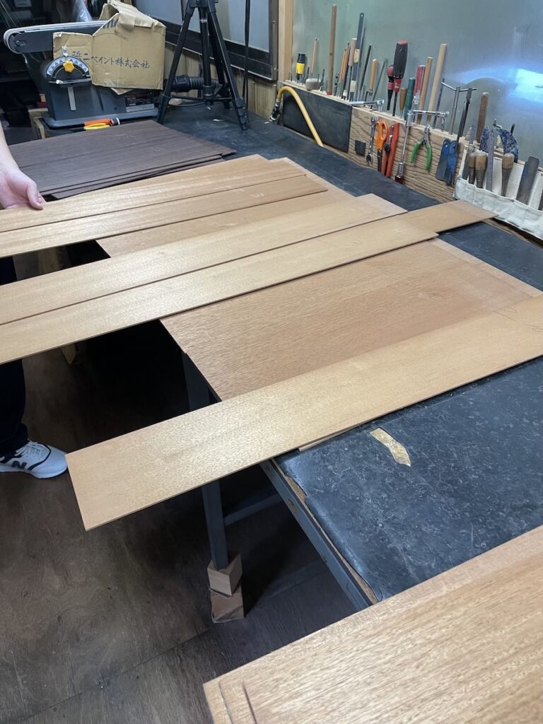 先日、「 TOKYO OFFICE 」へ試奏にお越しいただいた山梨県 A様とともに、工房にてオーダーモデルの材料選定を行いました。