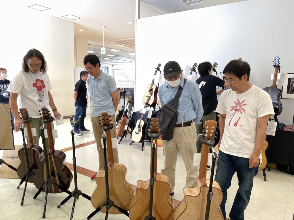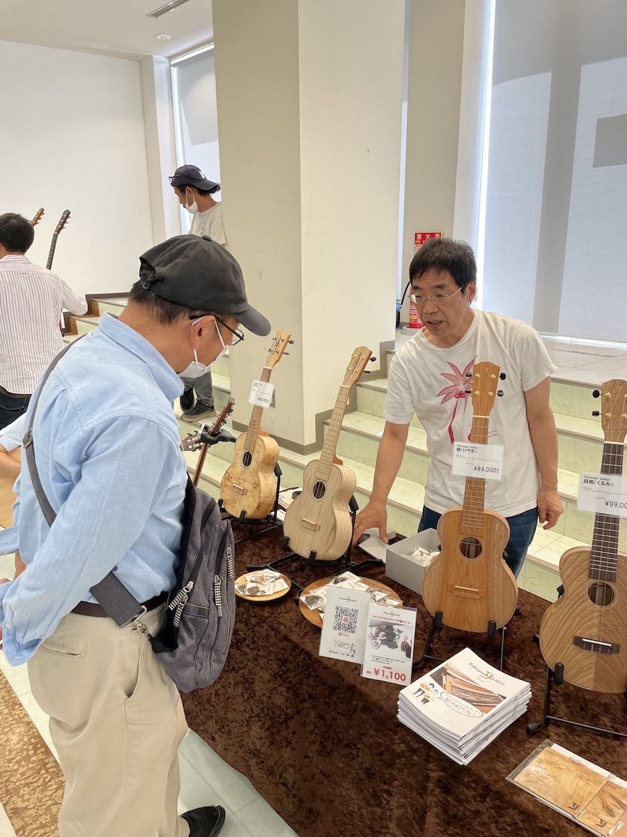 そんな中、階下の島村楽器店内では、お客様にハンドクラフトギターフェス特別仕様のウクレレ(カマティロバック&サイド)をご購入いただきました。写真を撮り損ねてしまい、残念。