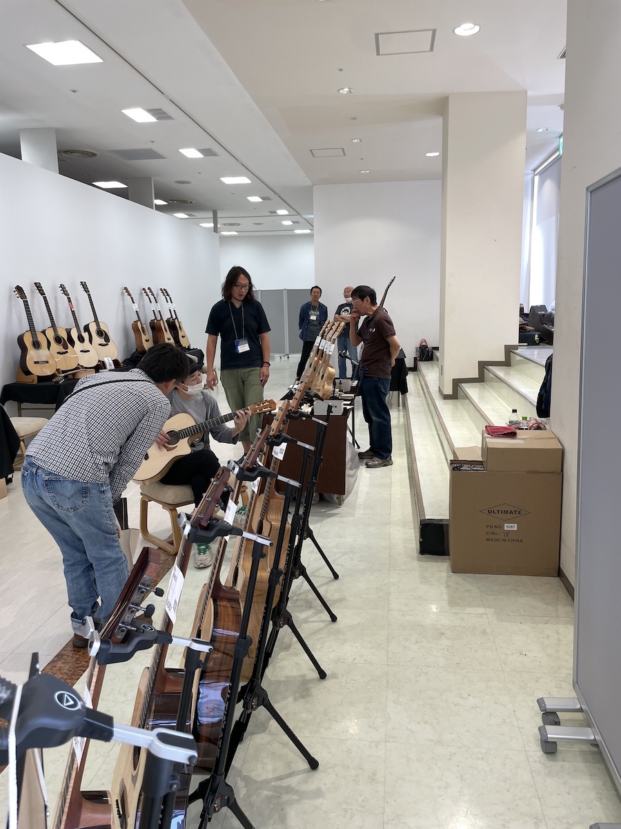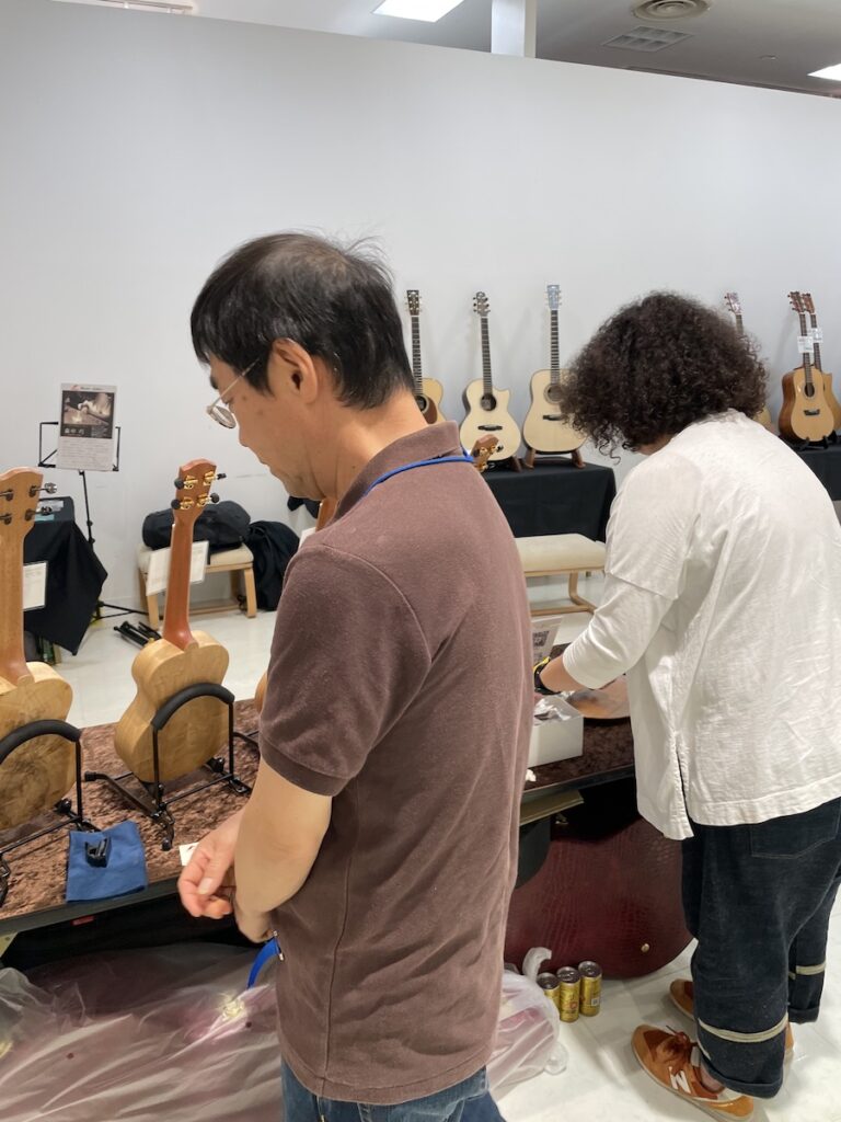 気がつけば、こちらの試奏のお二方もナイロン弦。ブラッシュアップした仕様をお気に入りいただけたようです。