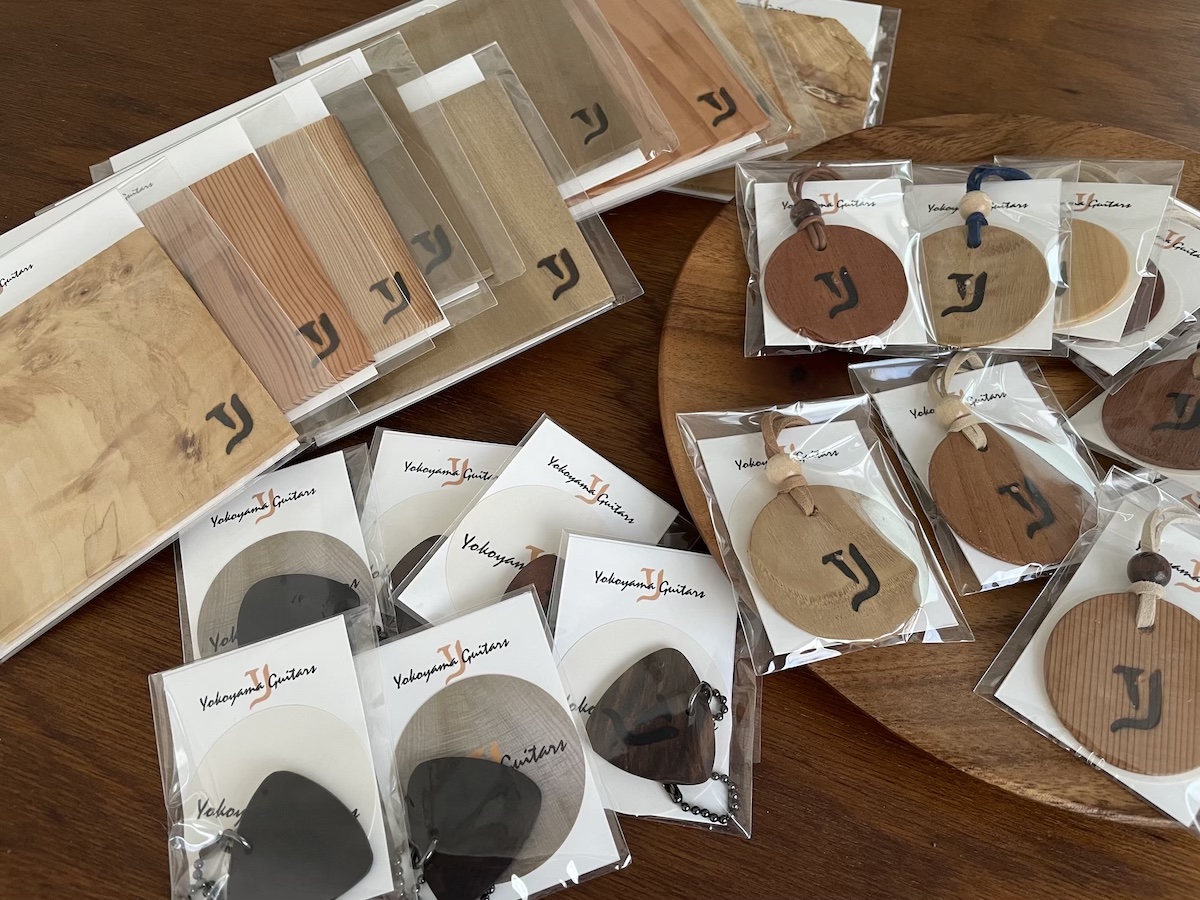 今回は、楽器製作の際の端材で作った小物が大人気。お手伝いさんがせっせと説明しています。