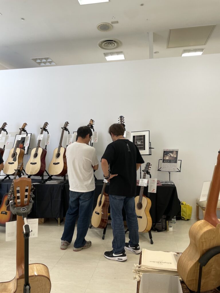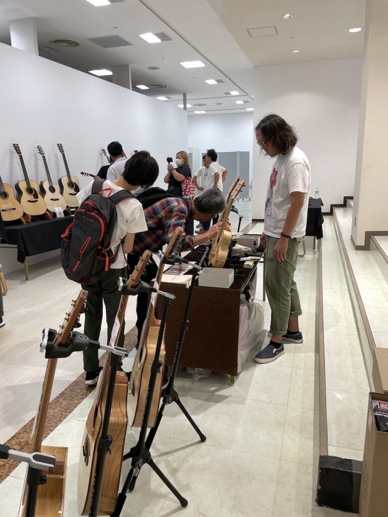 後半、お客様が少し落ち着いたところで、Morris 森中さんや、Sugi Guitar 杉本さんと製品のことや、近況報告で盛り上がりました。皆さん、お元気そうで何よりです。