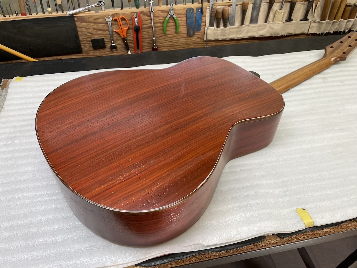 バック材にはセンターにカマティロバック、両ウィングにホンジュラスマホガニーを採用した3ピースバックとなっています。サイド材も貴重なホンジュラスマホガニー仕様です。