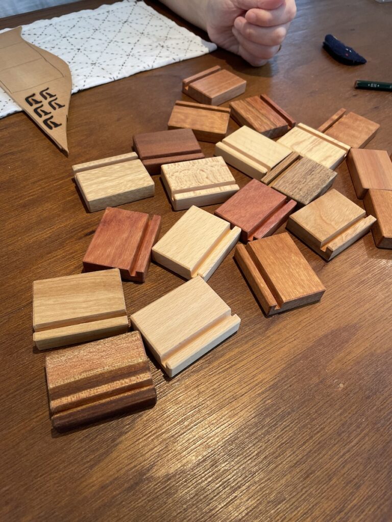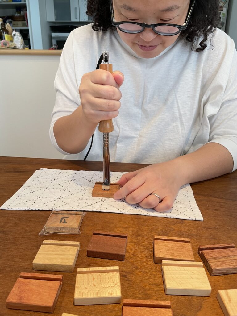 カレンダーの台は、お手伝いさん(橋川さん)が「Y」字の焼印を押した木製スタンドです。