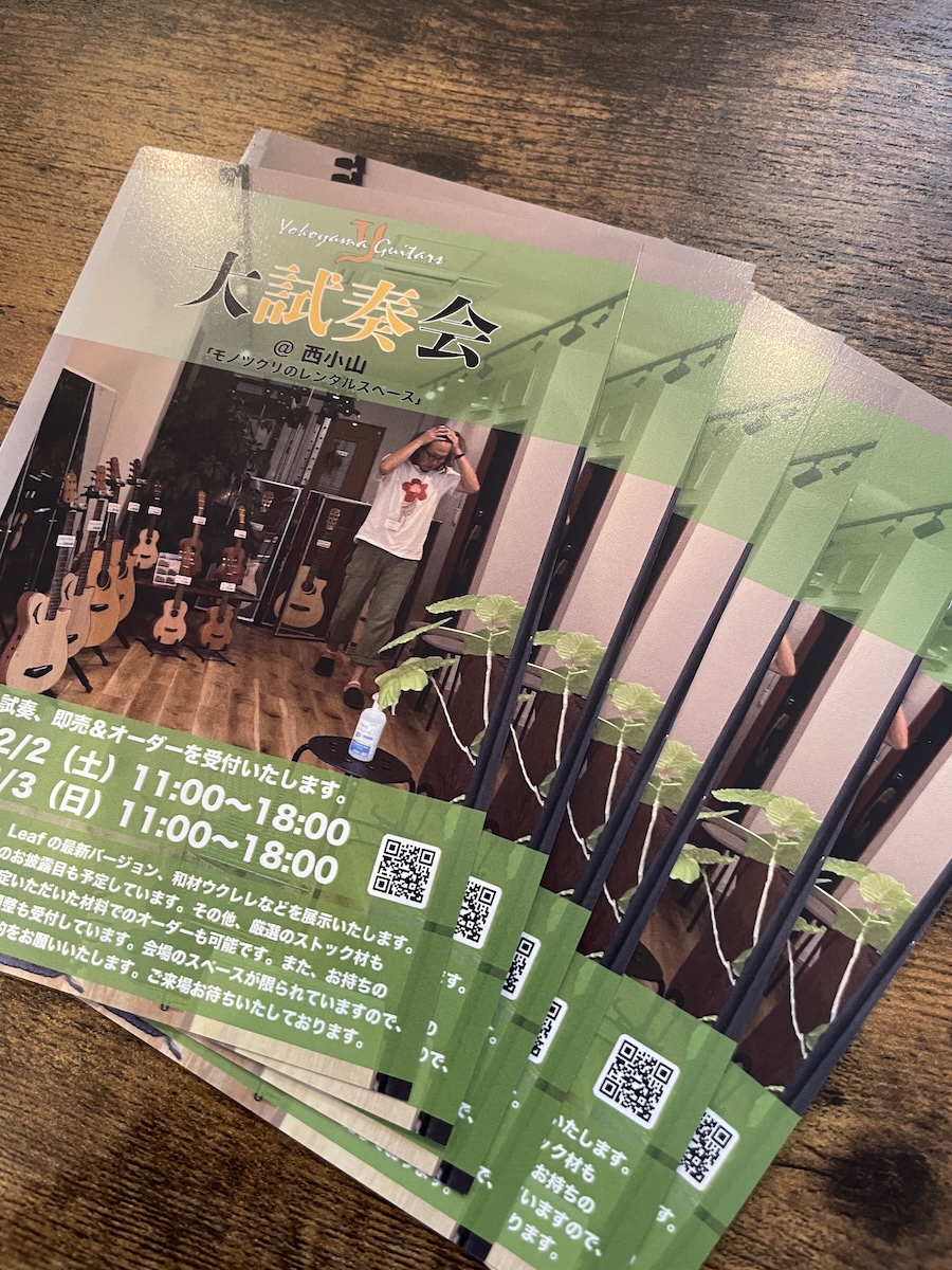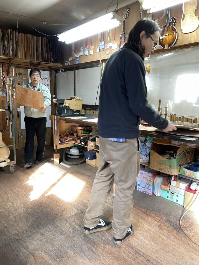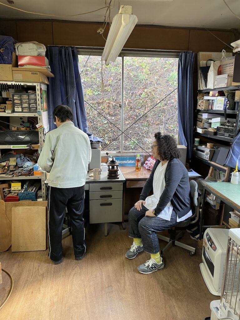 Yokoyama Guitars工房にて、イベント前の最終打ち合わせです。この日は雨が降ったり、晴れたりと、とても変な天気でした。