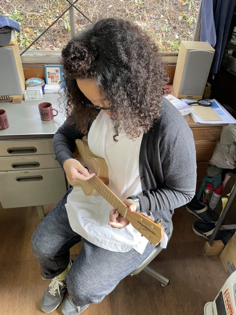 そんな中、熱心にウクレレを練習しているお手伝いさん。