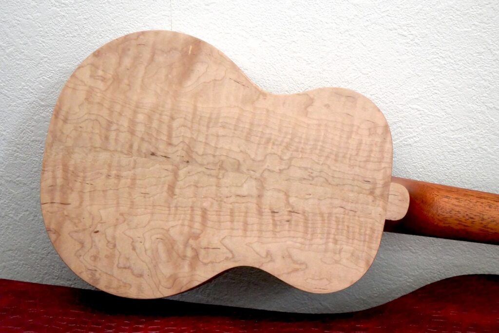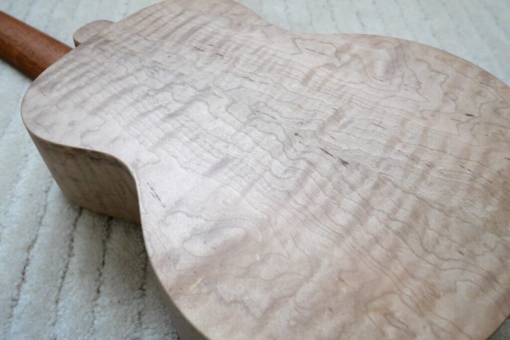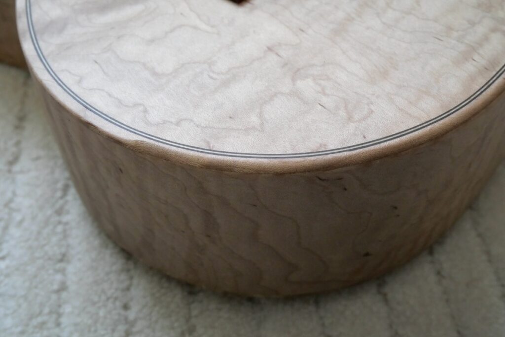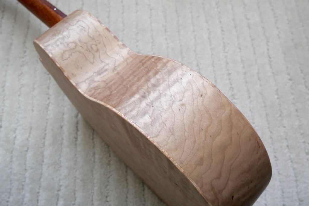 普通のメイプルや、楓より硬く、芯がありながら、軽やかなトーンです。エルボーコンター加工が施されており、抱えた時の滑らかさも秀逸です。