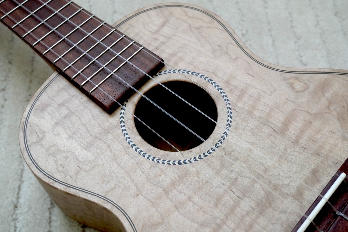 ネックはマホガニー、指板、駒にはコア、ヘッド天神には、ボディ材に合わせてもみぢ材を採用した、コンサートウクレレです。
