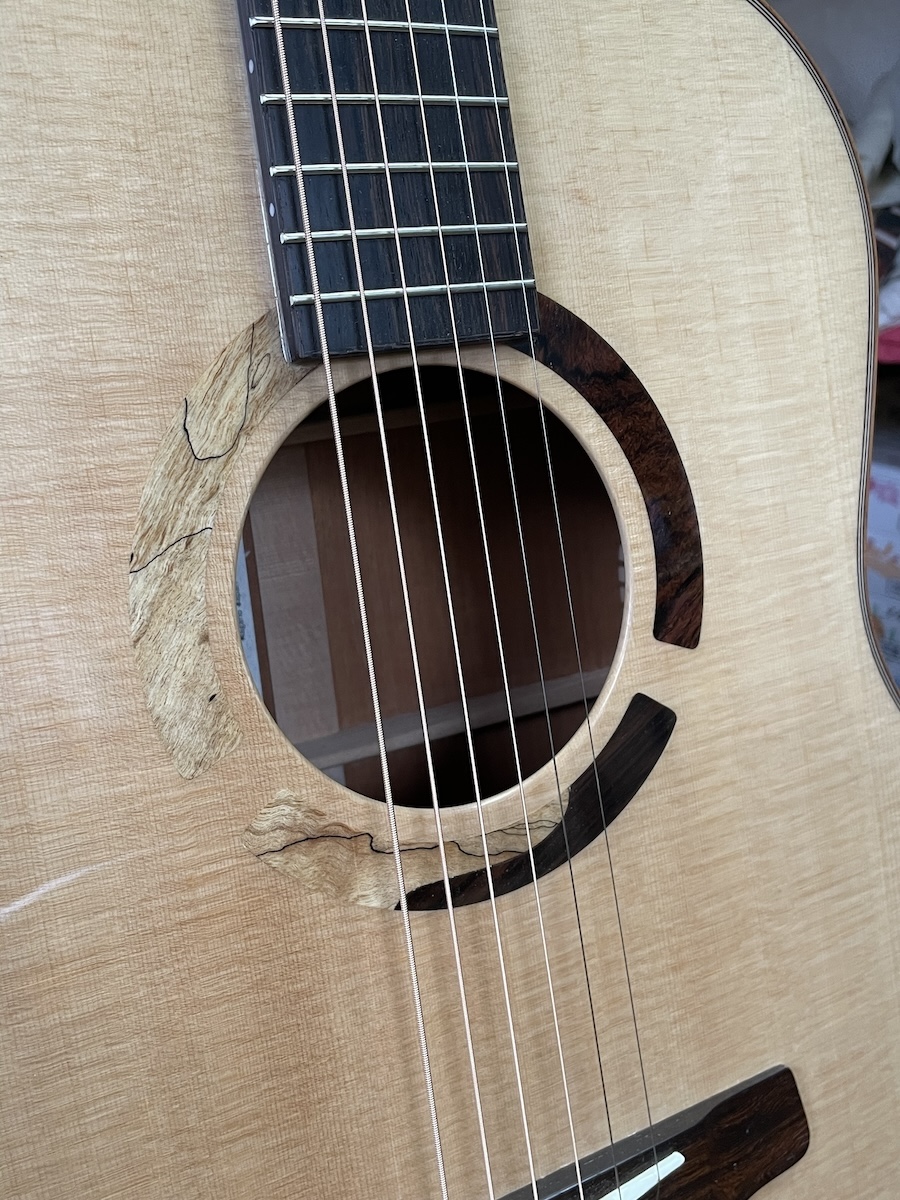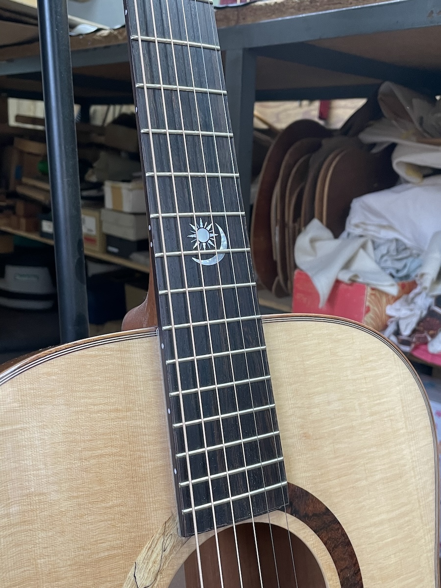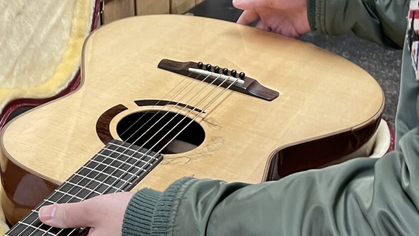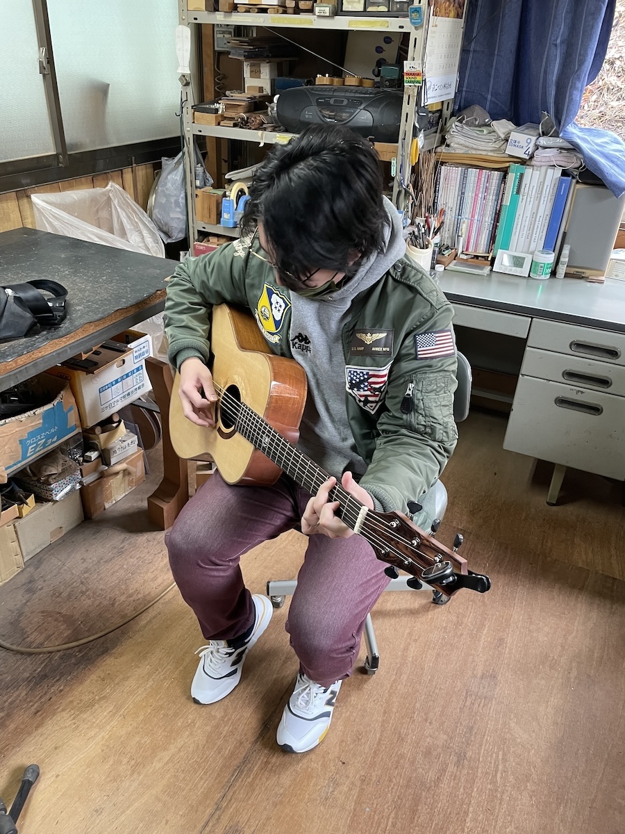 完成してから弾かれていないので、どんどん音が変化していきます。聞いている我らも、A様もそのサウンドの変化を体感します。完成したてのギターは面白いですね。