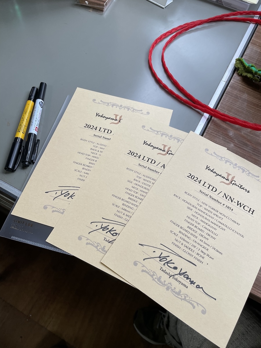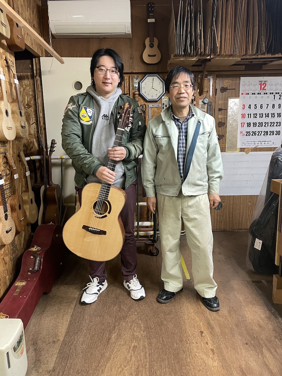 少し早く到着したので、「お年玉ギター」用の仕様書にサインを入れてもらいます。先日の大試奏会でサインしてもらうはずが、すっかり忘れていました。