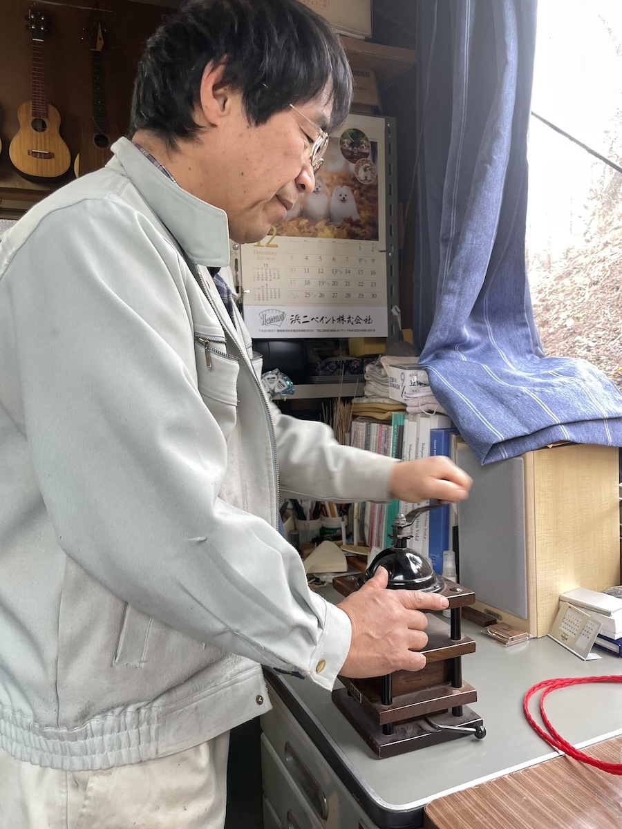 A様がいらっしゃる前に、コーヒーを淹れる準備です。