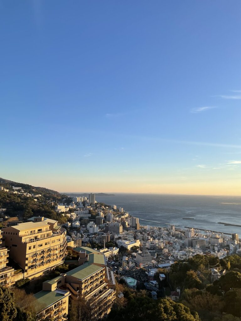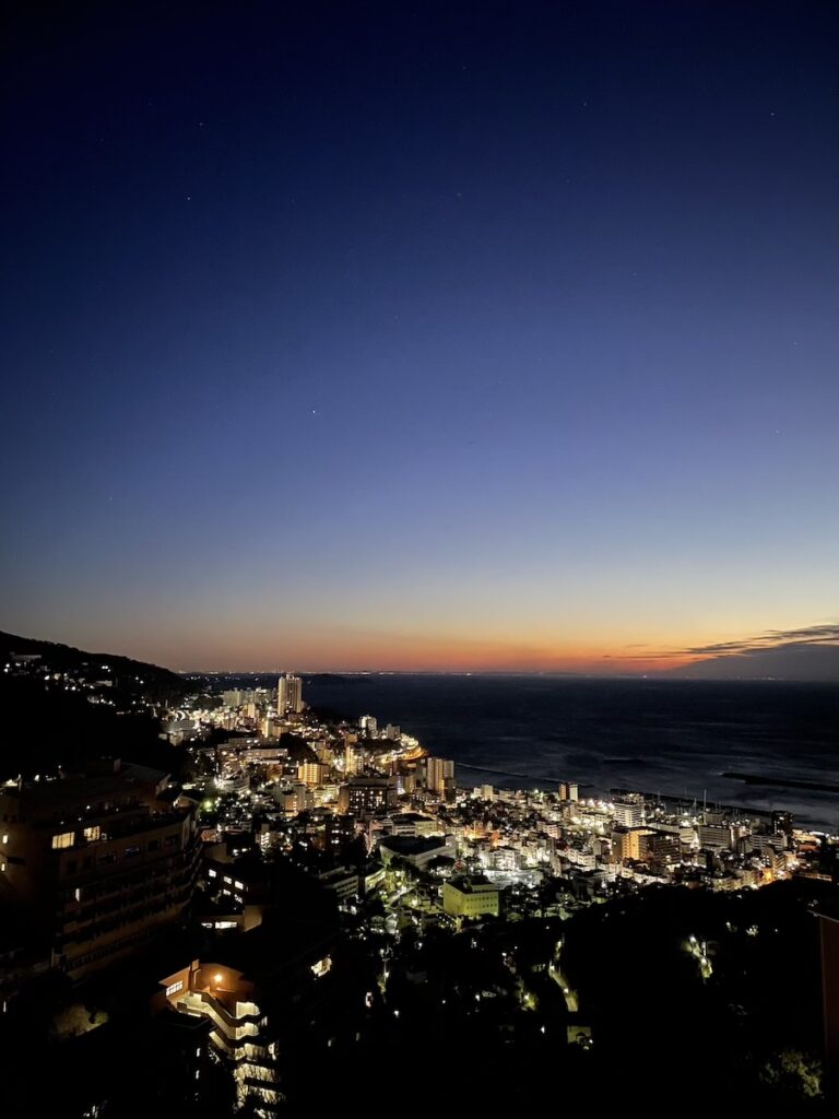 宿から見える景色に「旅行に来たって感じがするね」と喜んでいただけました。伊豆ならではの絶景です。
