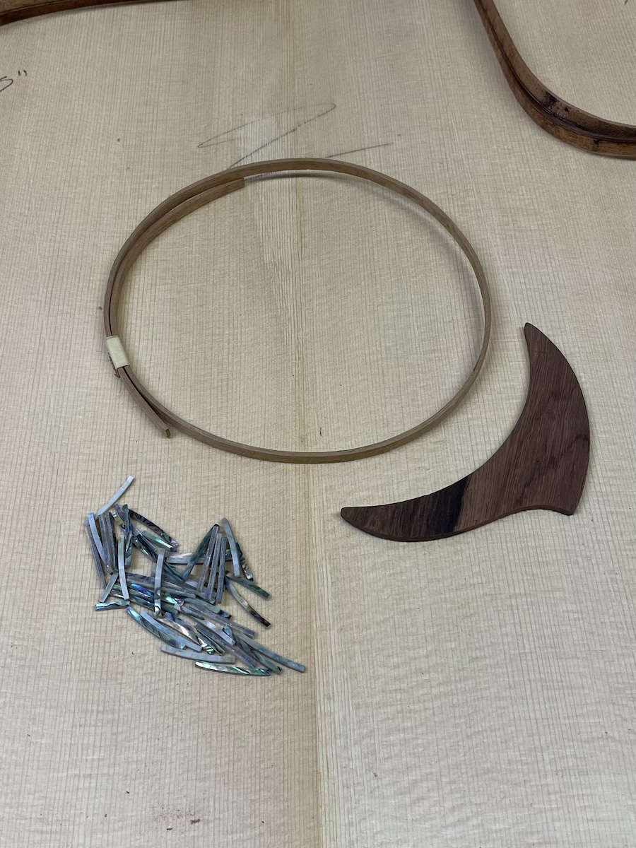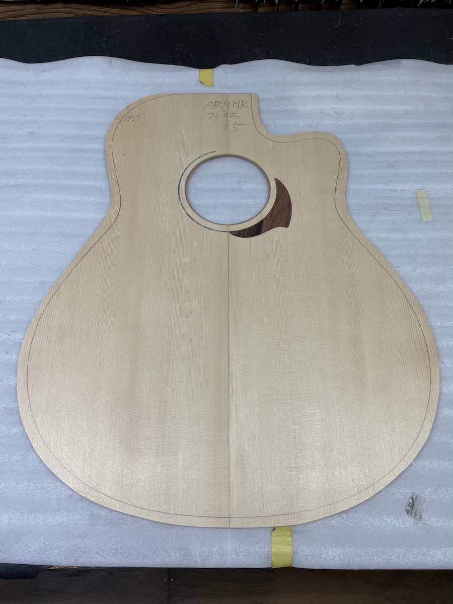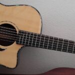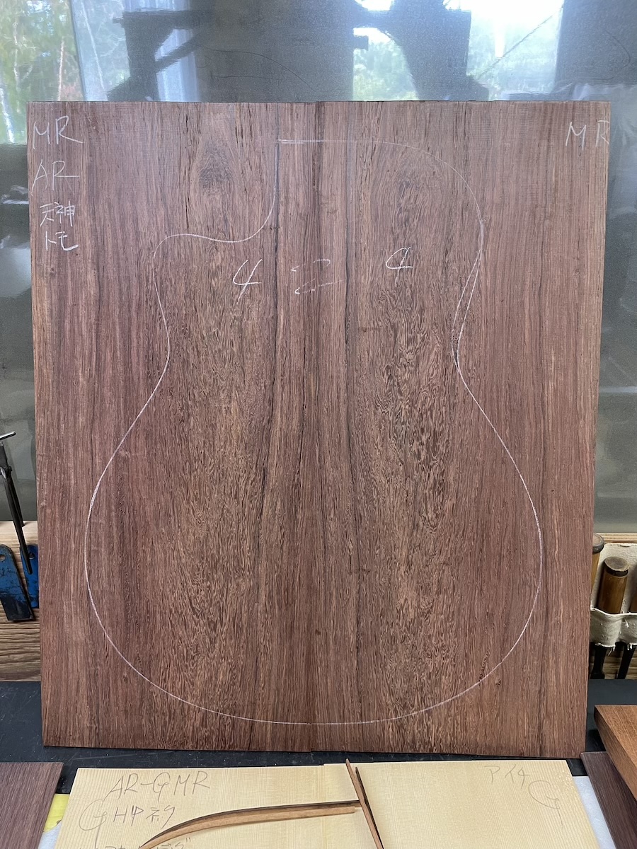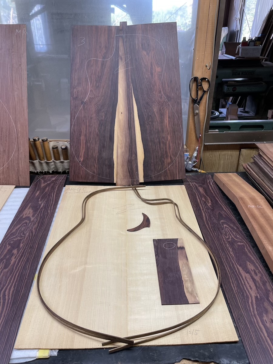 こちらは、ジャーマンスプルーストップに、マダガスカルローズウッドバック&サイドを採用したARシェイプモデルです。サウンドホールインナー等も採用し、おしゃれな仕上がりになりそうです。