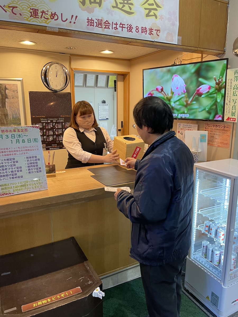 「とくら」で昼食の後に、新春の運試しのくじ引きがありました。残念ながらカレンダーでしたが、わいわいと楽しめました。
