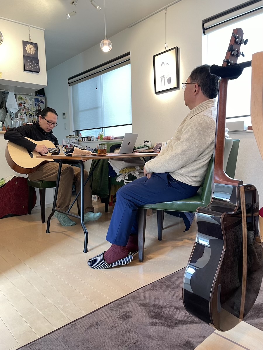 お客様オーダー品の進捗確認、今年のスケジュール等を再確認します。通常のアコースティックギター以外にも、「Leaf-Quiet」の製作も順調です。