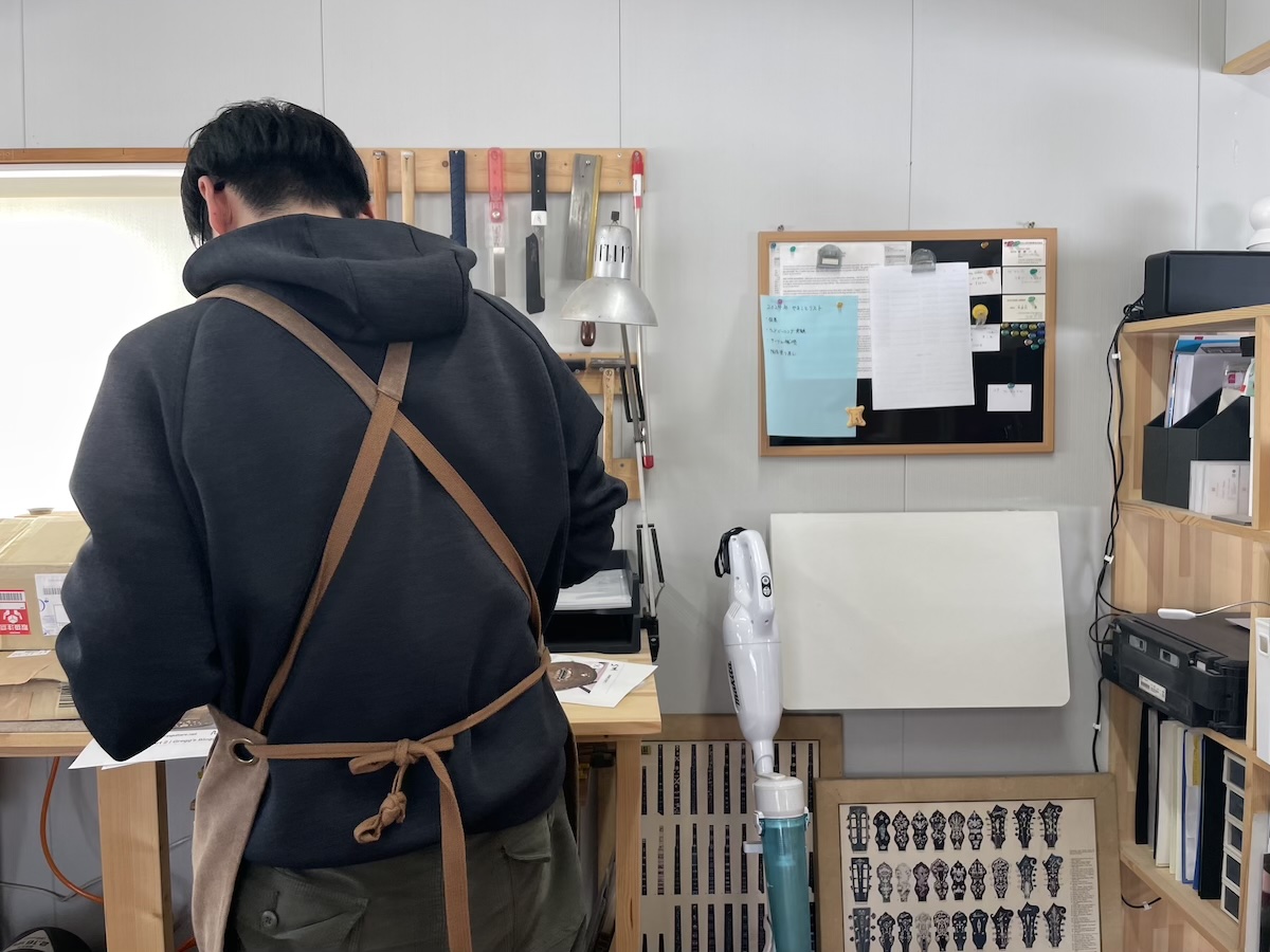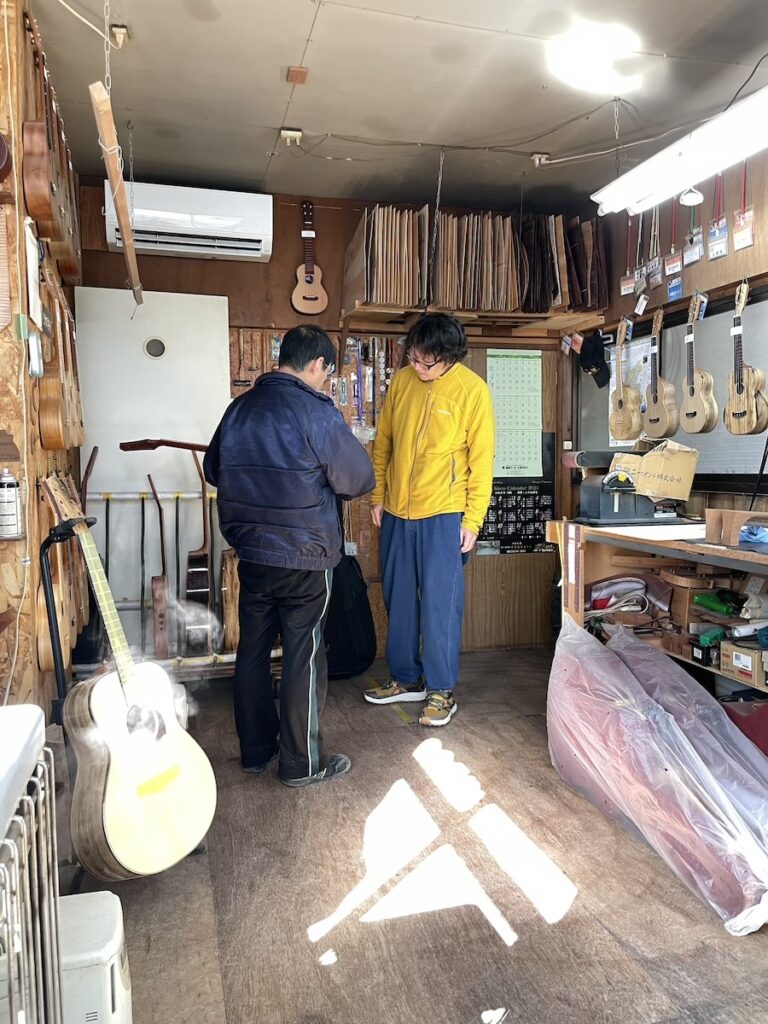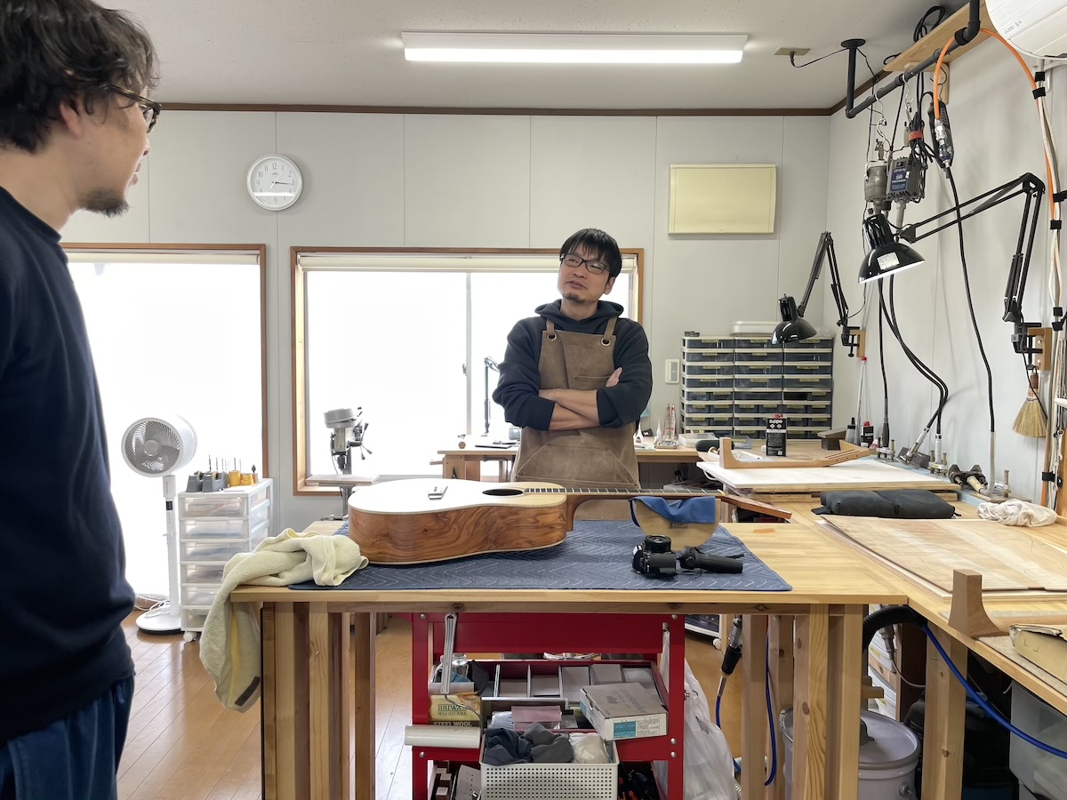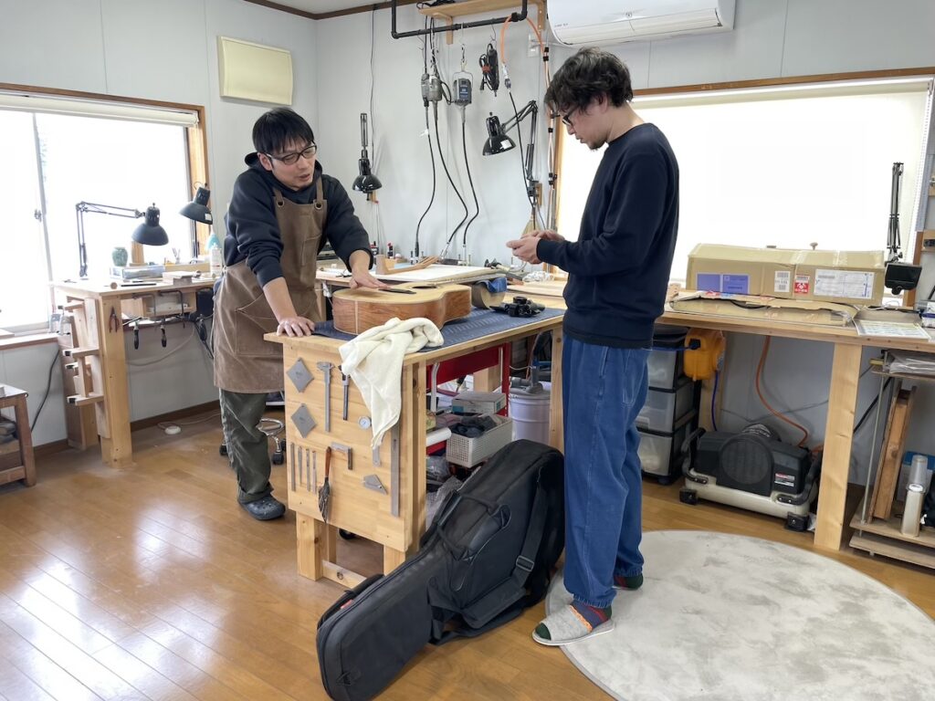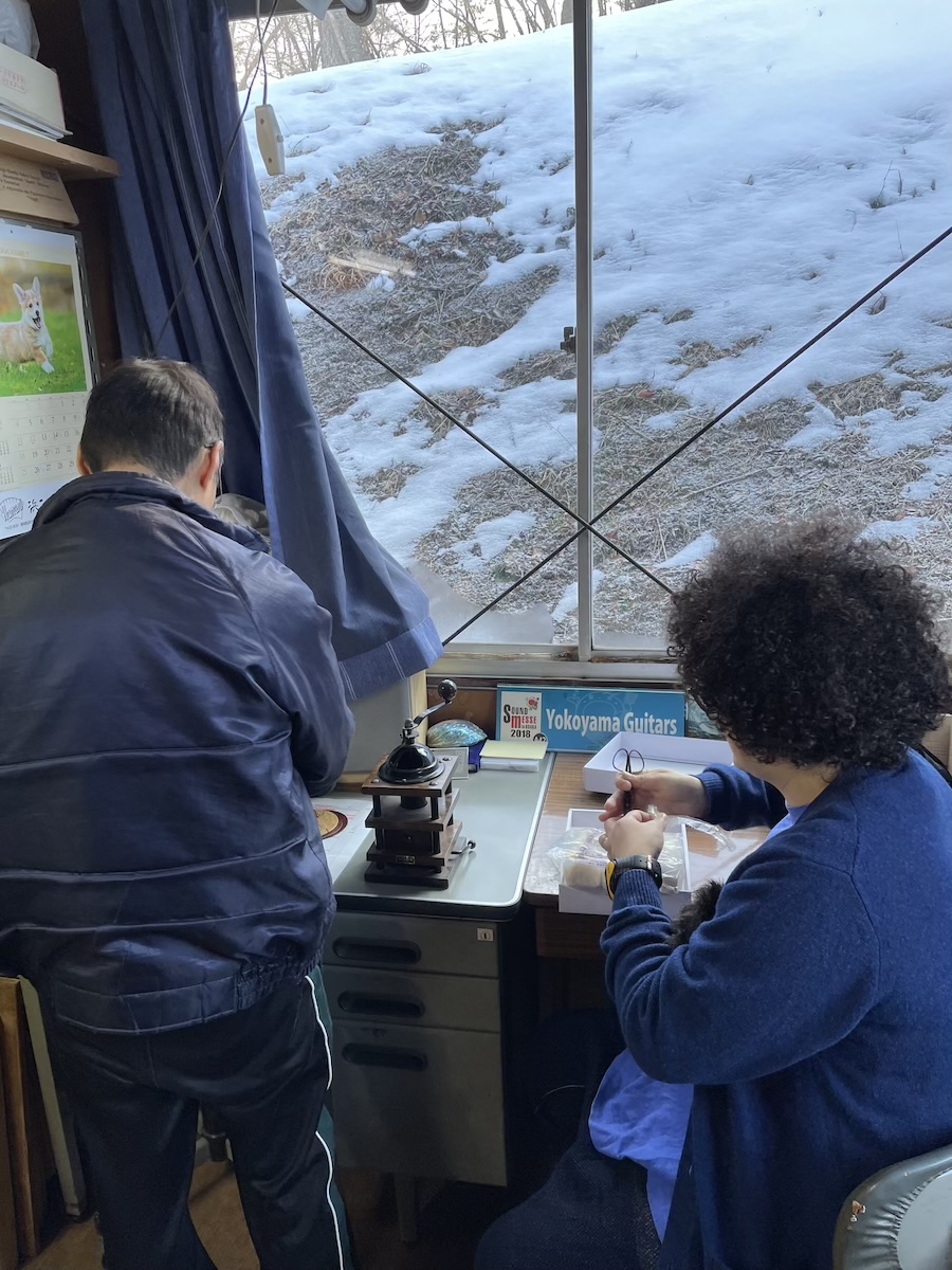 工房へ材料を持ち込み、確認してもらいます。インレイのイメージを伝えて、あとは小川さんのセンスにお任せです。
