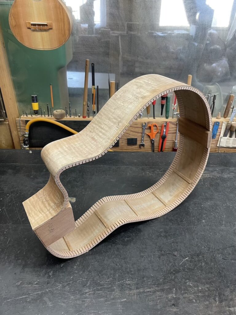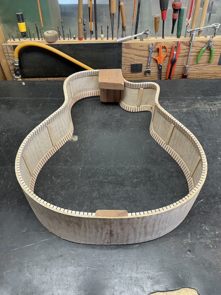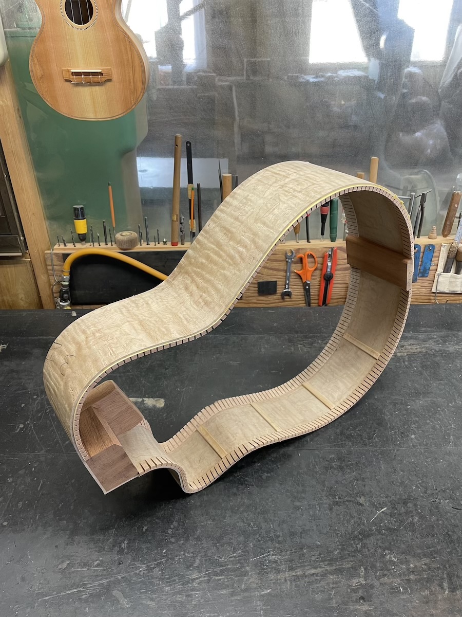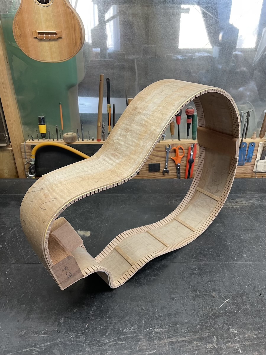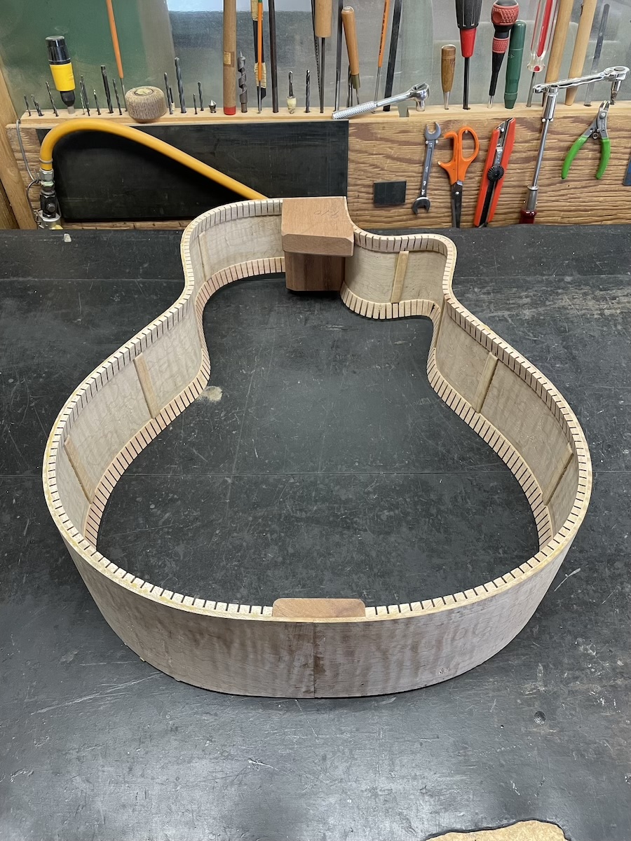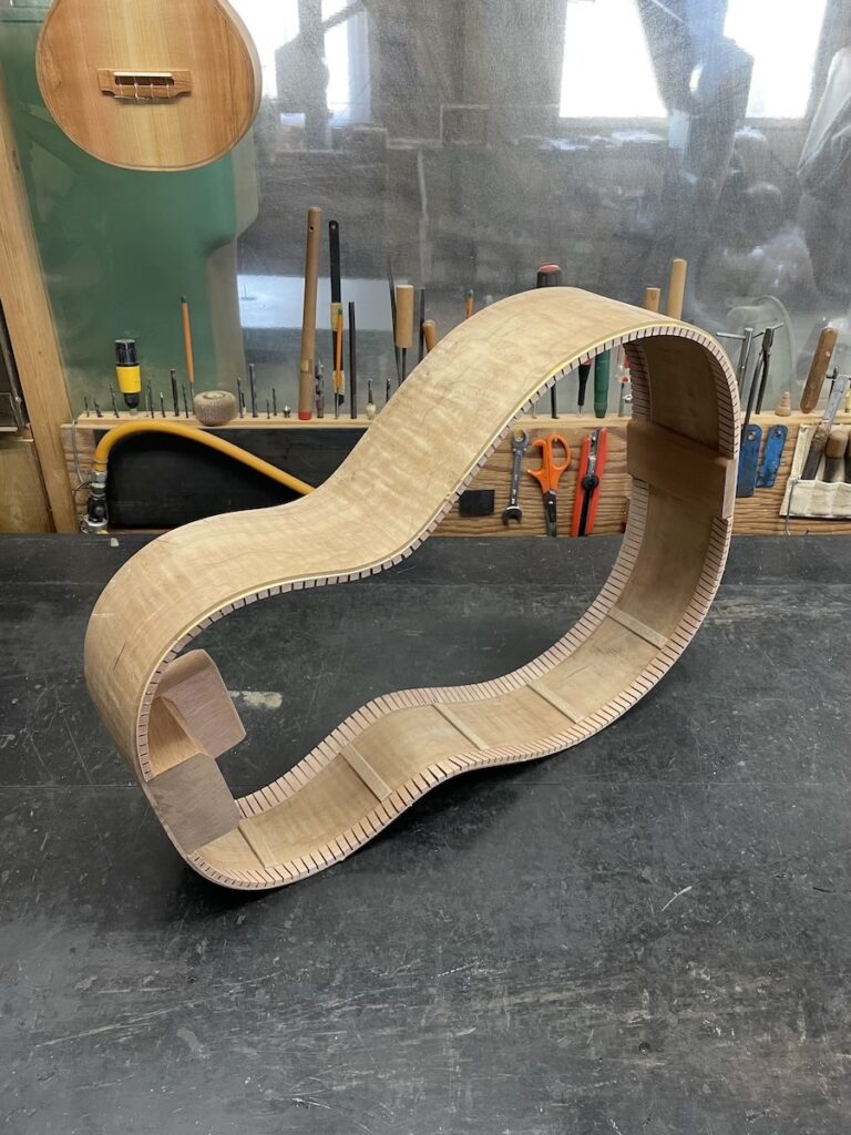 サイド材も凄い杢が入っていたので、うまく曲がるか心配でしたが、素直に曲がってくれてひと安心です。