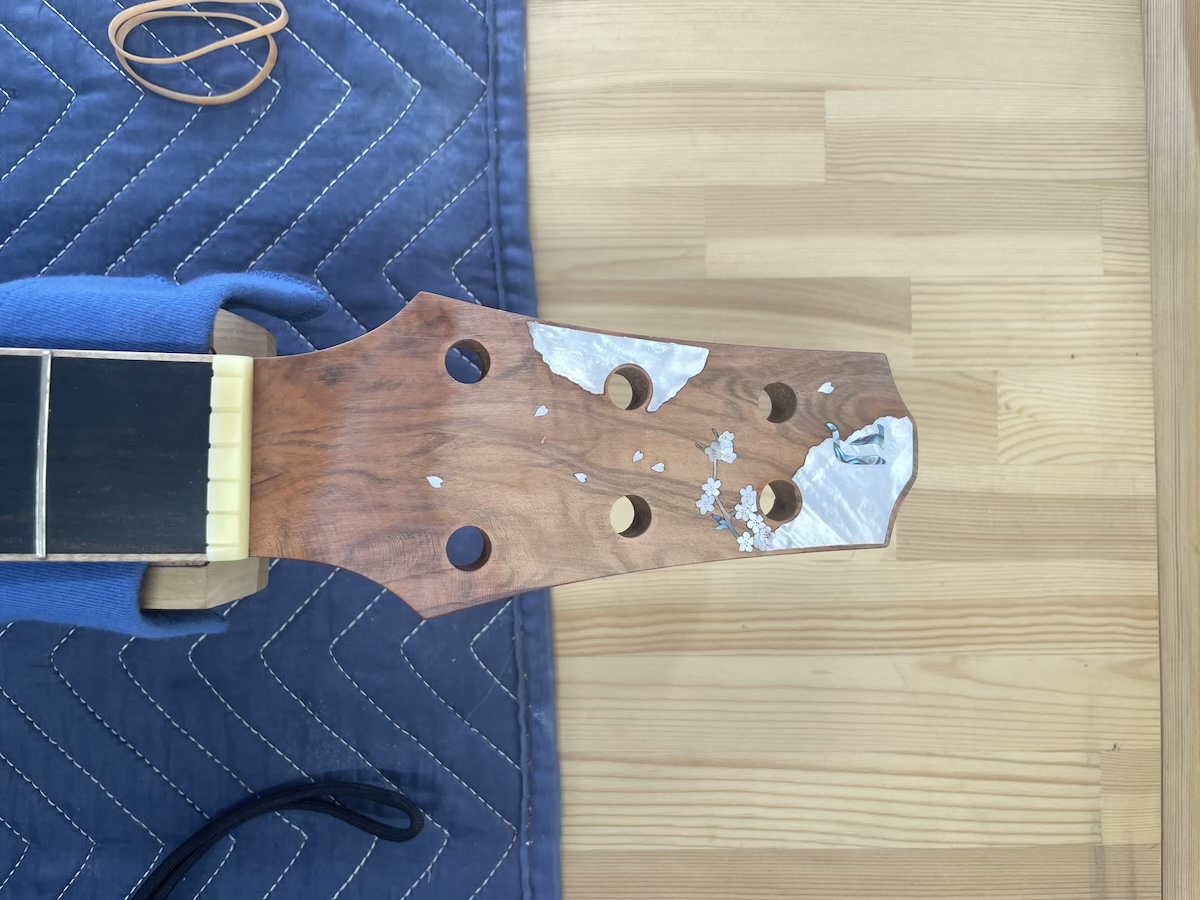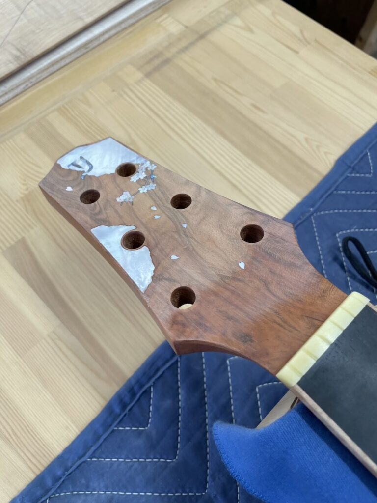5月開催の錦糸町「Tokyoハンドクラフトギターフェス」に向けて製作中のショーモデル。