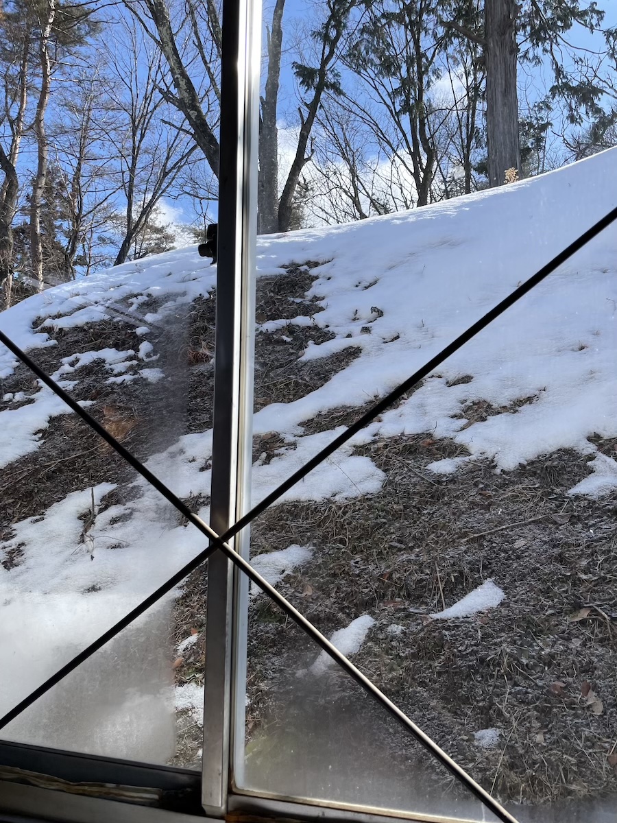 工房周りは、先日の積雪でまだ雪が残っています。珍しく雪が消えないままです。
