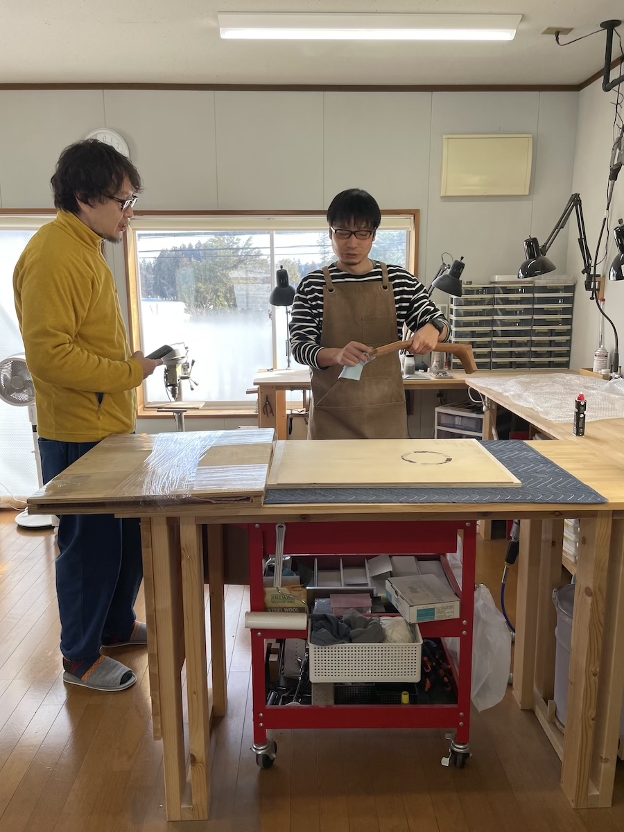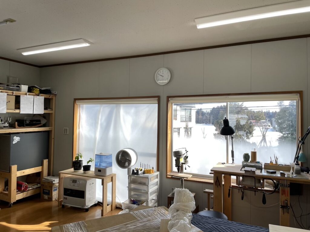 受け取ったあとに長野の工房まで完成品を移動するため、珍しく午前中にお邪魔しました。この日は2月の新潟とは思えないぐらい暖かく、驚きの陽気です。