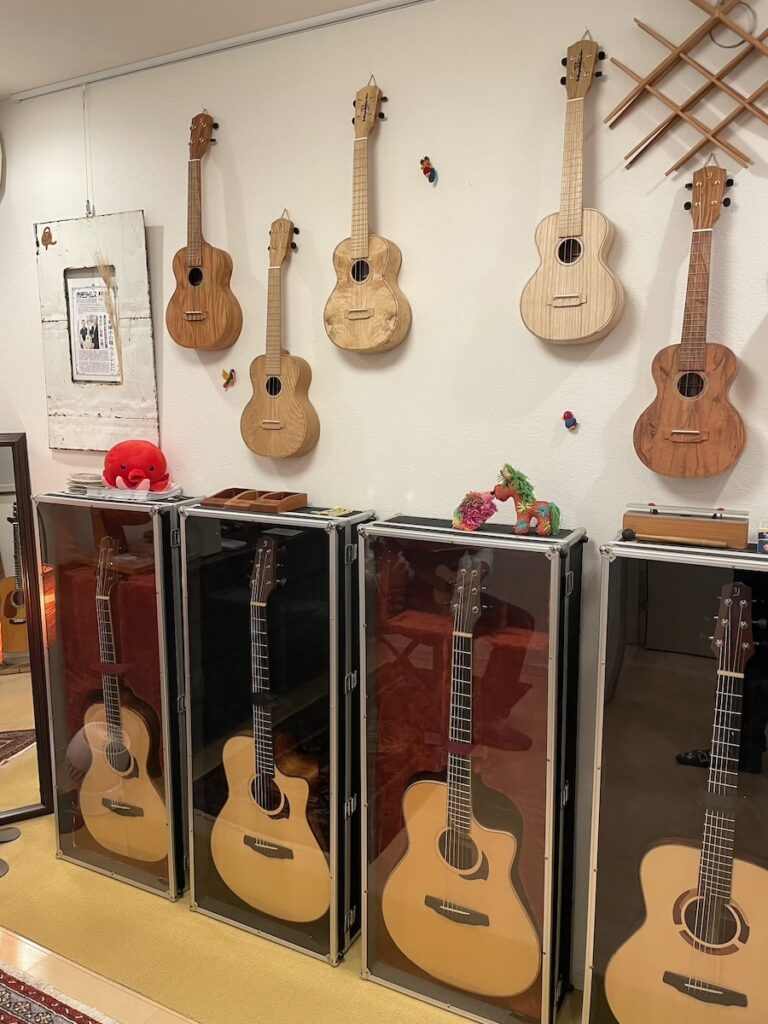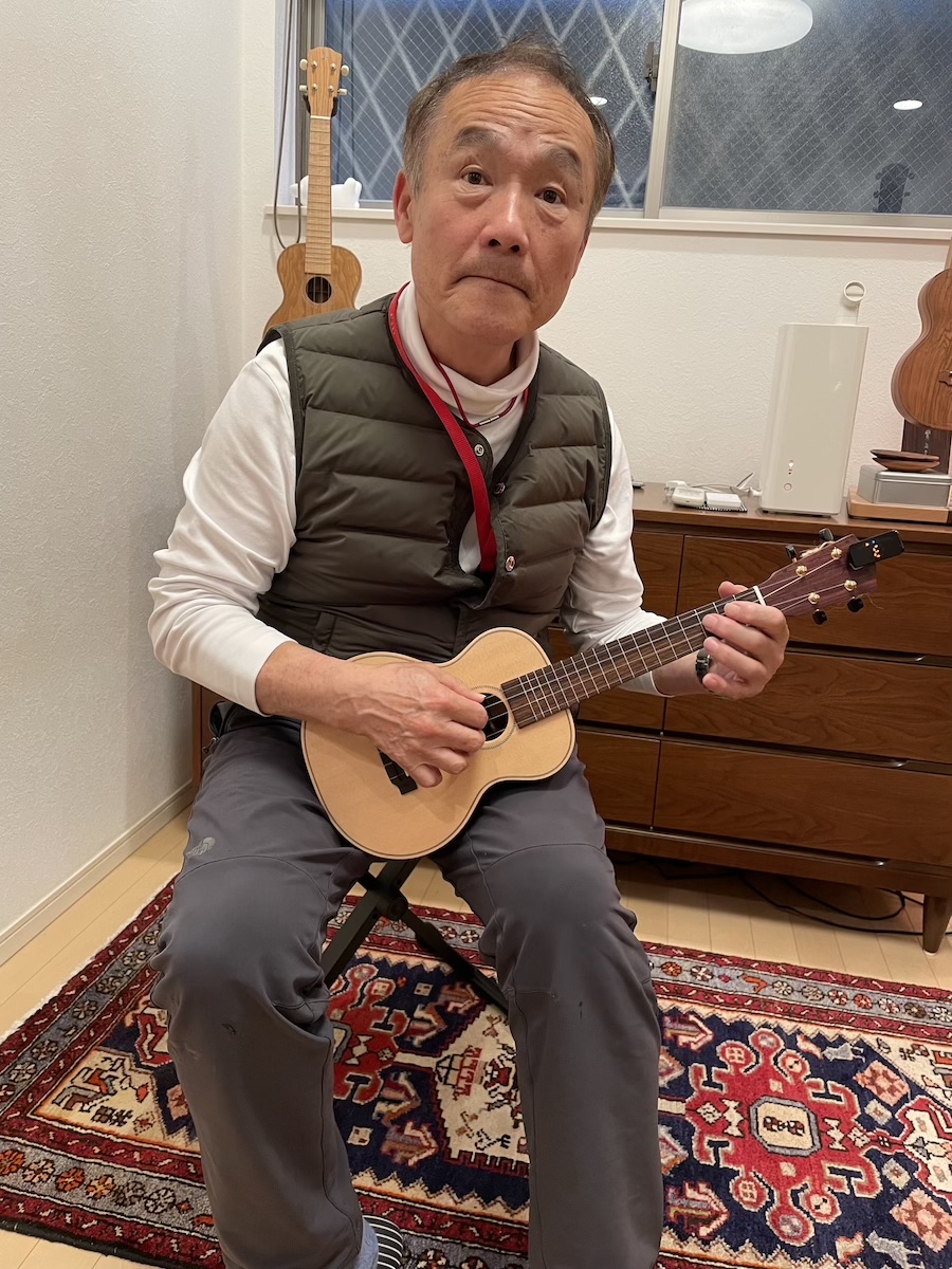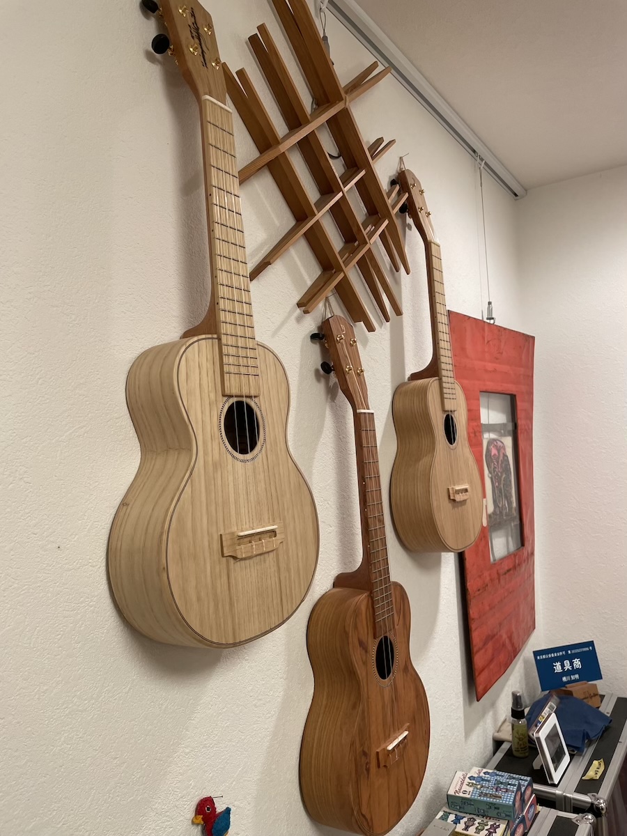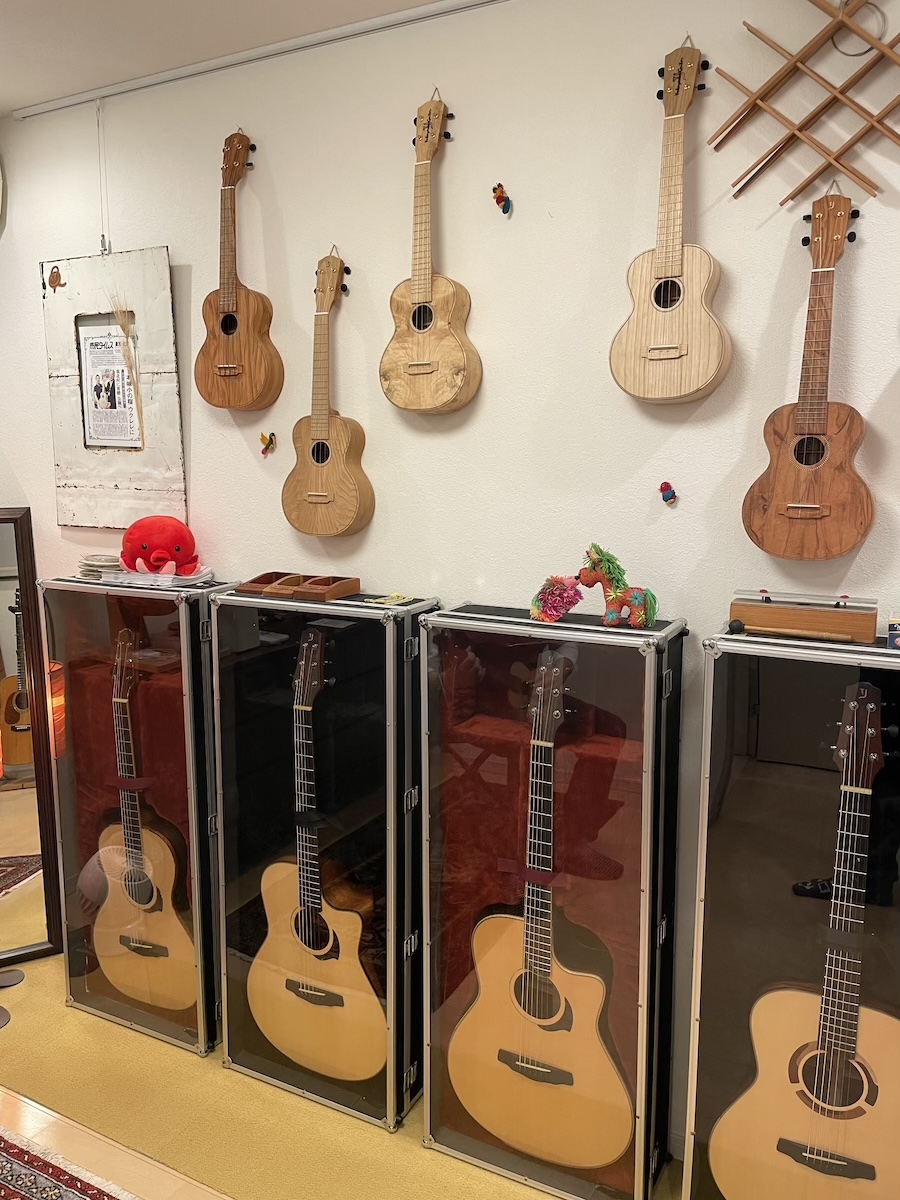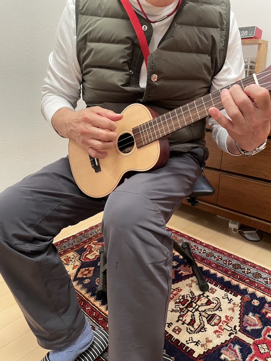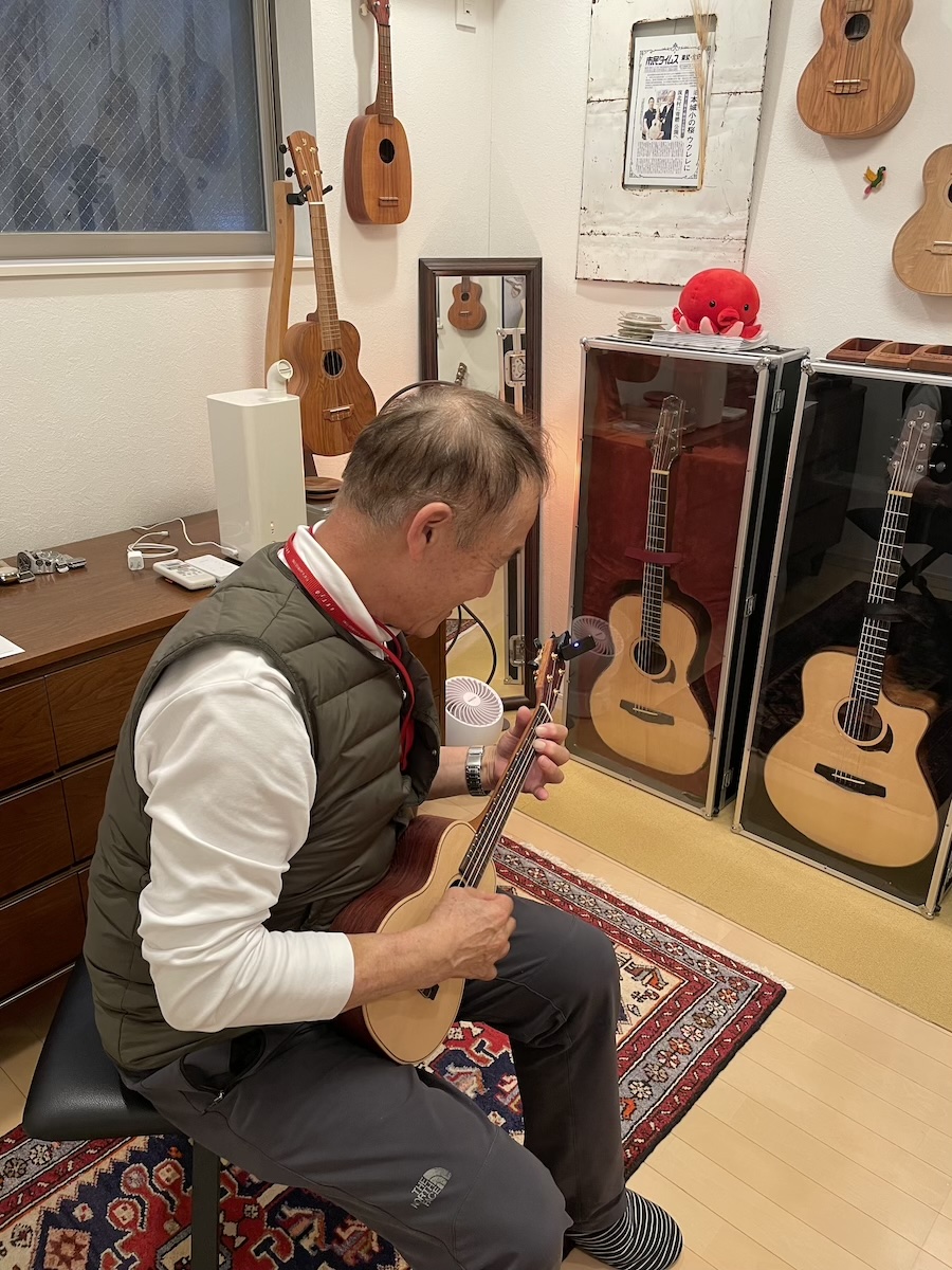 「色々な材料のウクレレがありますよ」とご案内すると、弾き比べながらご満悦な様子です。