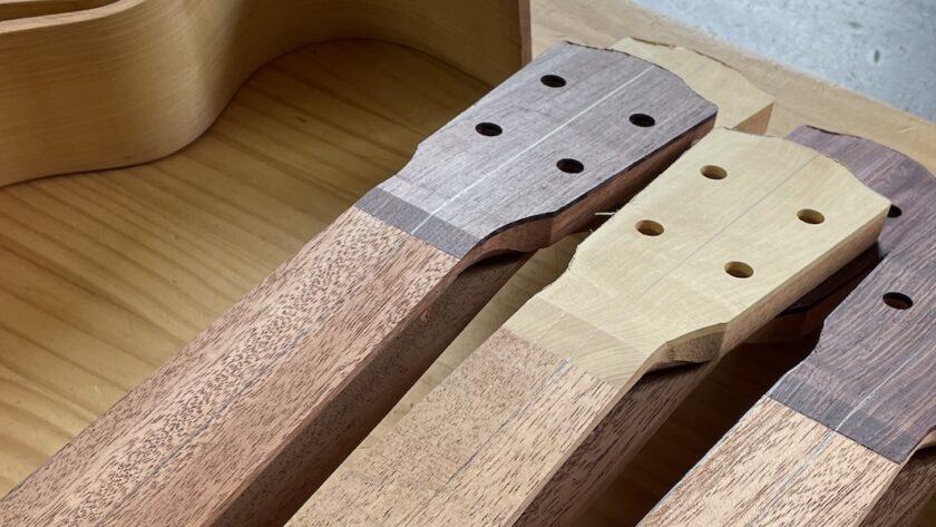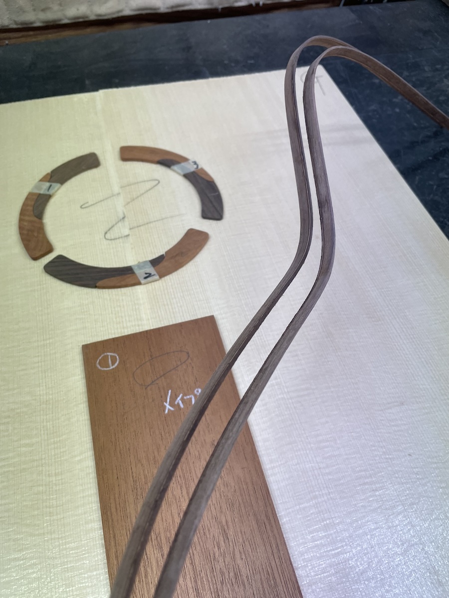 ヘッド天神材はホンジュラスマホガニー、バインディング材はウォルナットになりました。こちらも製作を開始したいと思います。