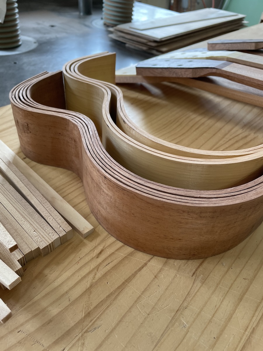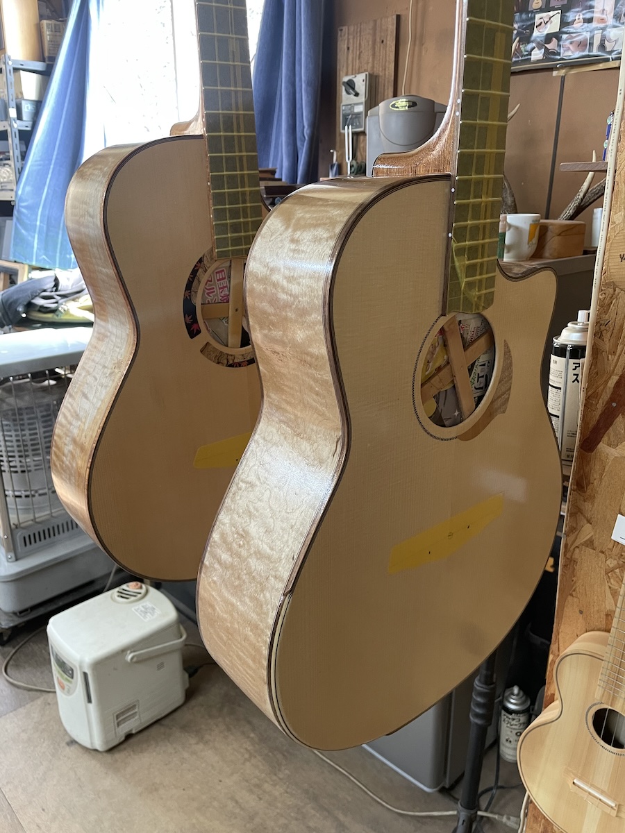 バック材の厚胴マホガニーも残りわずかです。確保しにアイチ木材さんにも行かないといけませんね。