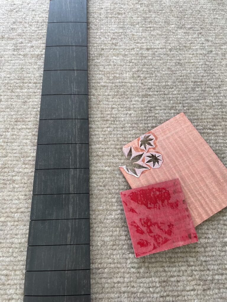 素晴らしい杢に、美しいインレイ。こちらも完成が楽しみです。