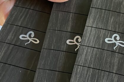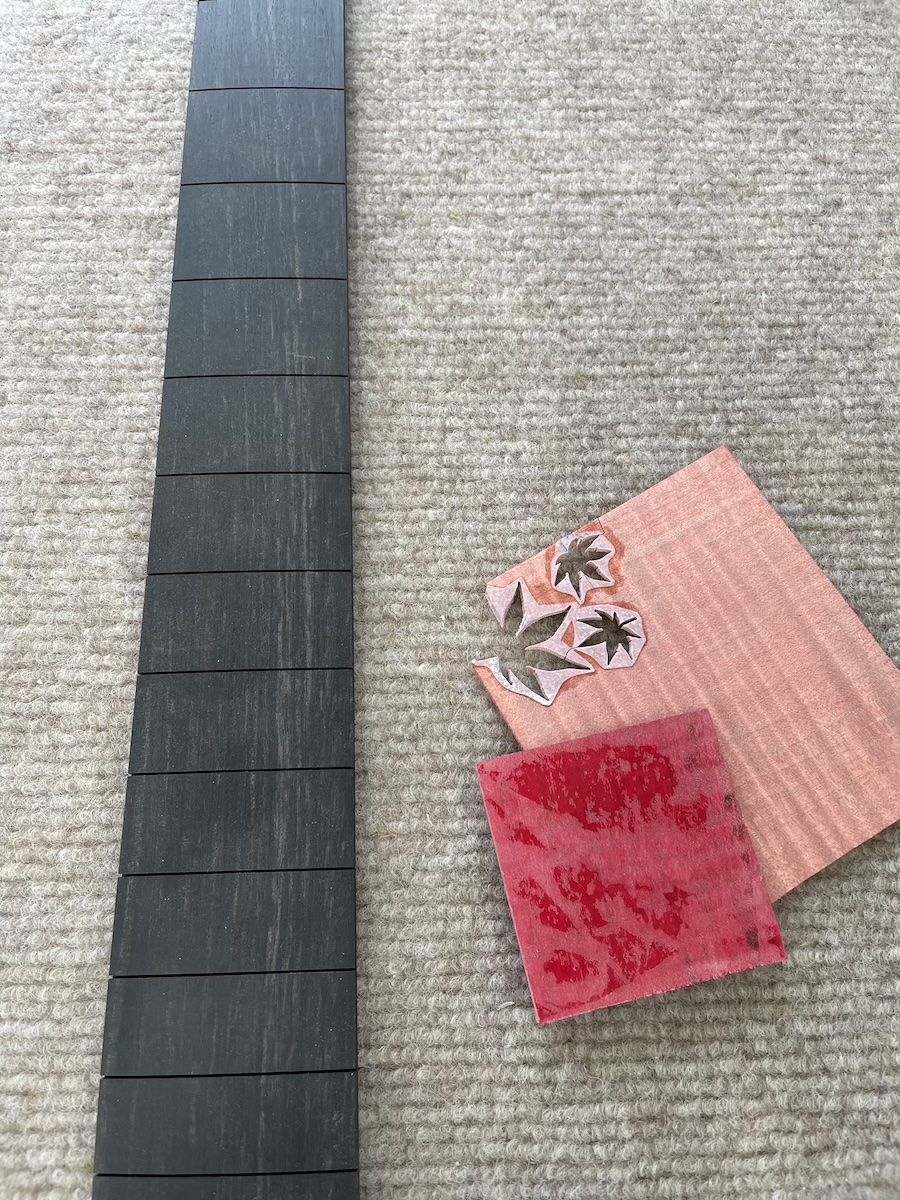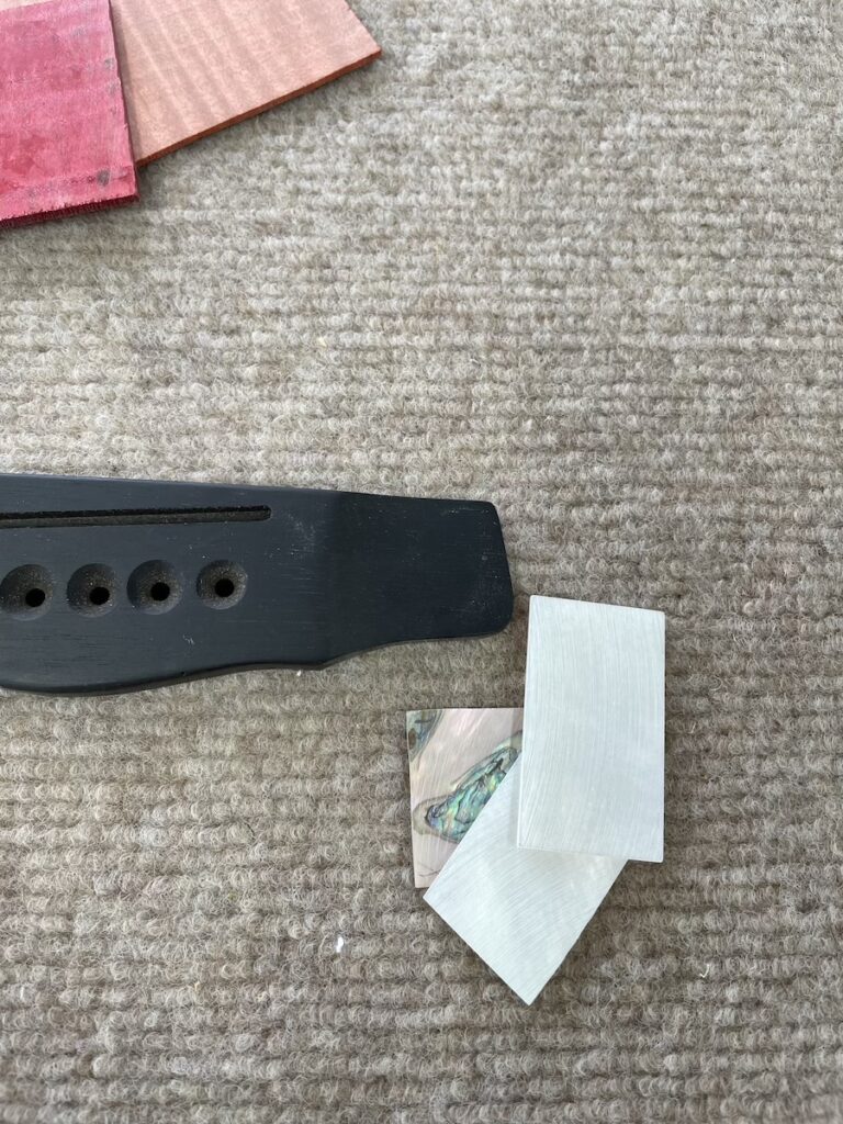 N様の指板&駒に採用するインレイの材料を撮影して、お客様へ送付します。