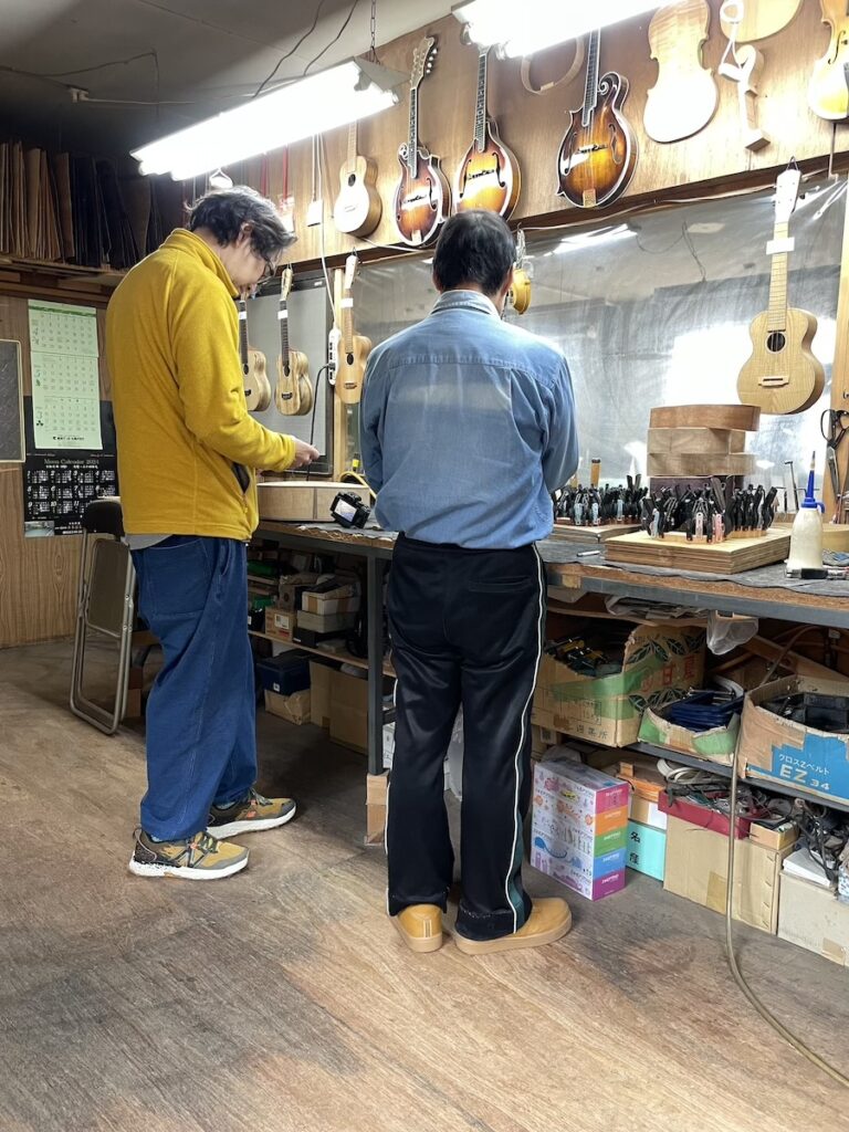 この日は生憎の天気でしたが、TOKYO OFFICE組が来る頃には雨も小降りになっていました。リクエストしていた弦や、小物も持参してくれました。本当に助かります。