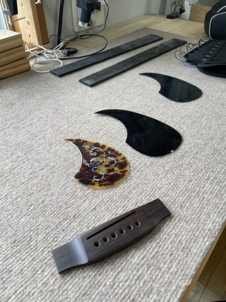 少し珍しい案件でしたが、こちらはギターではなく、箏の演奏に使う琴柱(ことじ)をしまっておく「琴柱箱」へインレイのお願いです。こちらは橋川母からの依頼で作業していただきました。