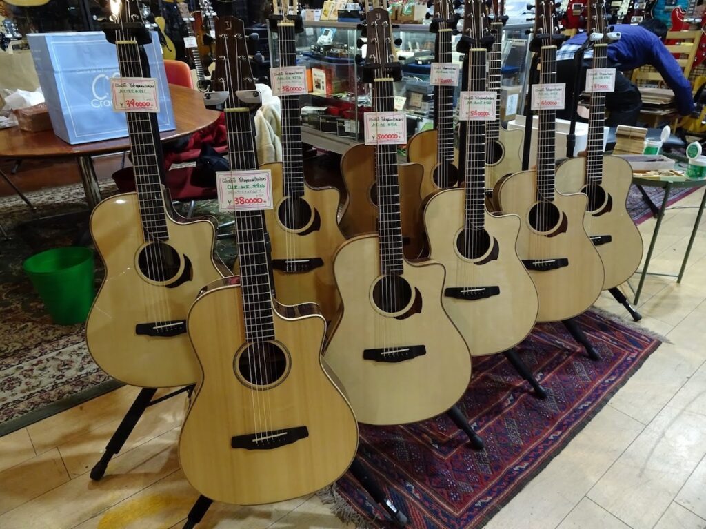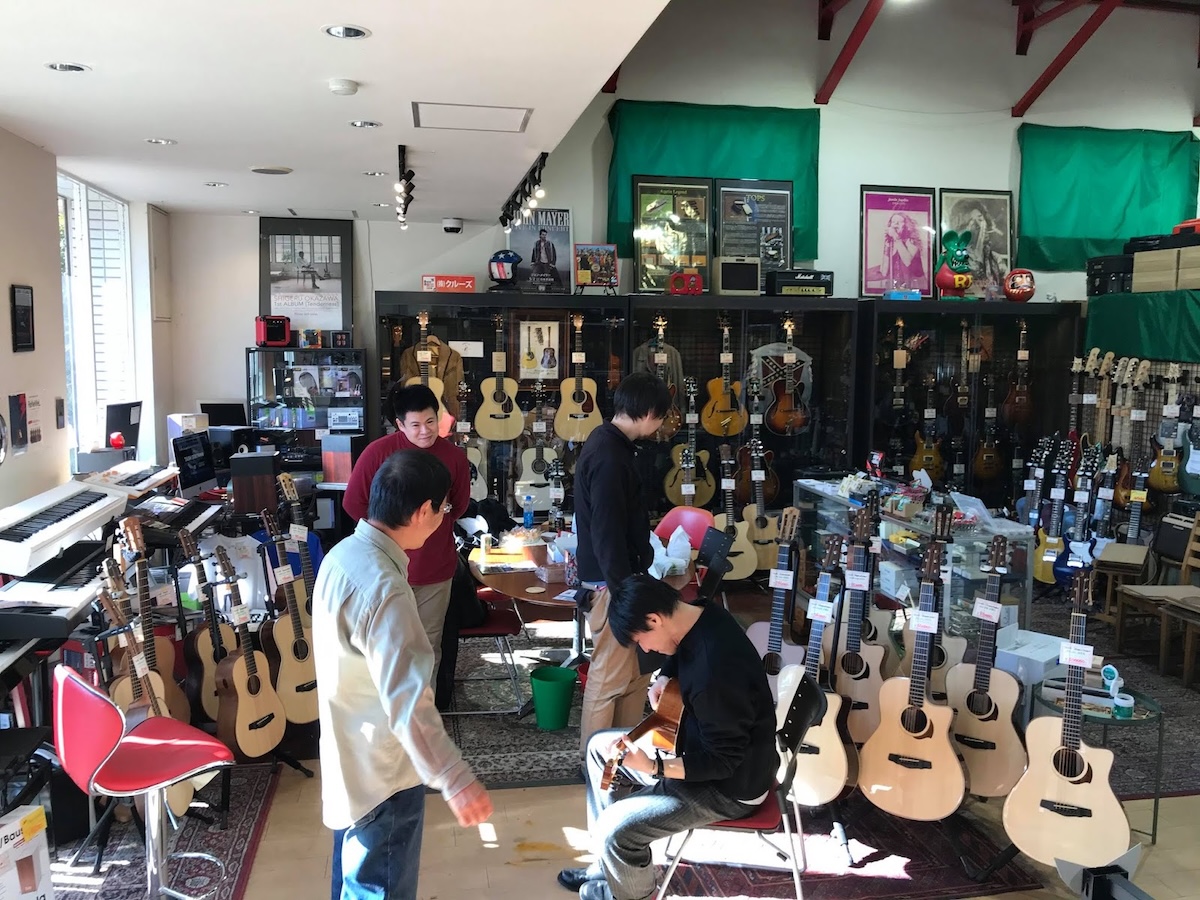 店内のいろんなところから楽器の音が鳴り響いています。