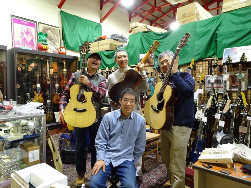 お三方とも、ご自身の自慢のブラジリアンローズウッドモデルを手に記念撮影。