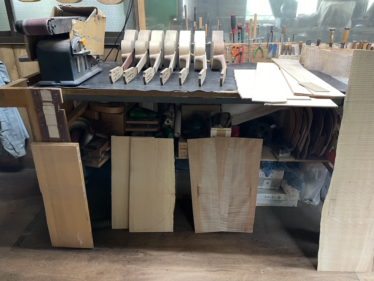 素晴らしい杢が入っていて、とても楽しみな材料です。それにしても、この杢でカッタウェイ部分が曲がるのでしょうか…。