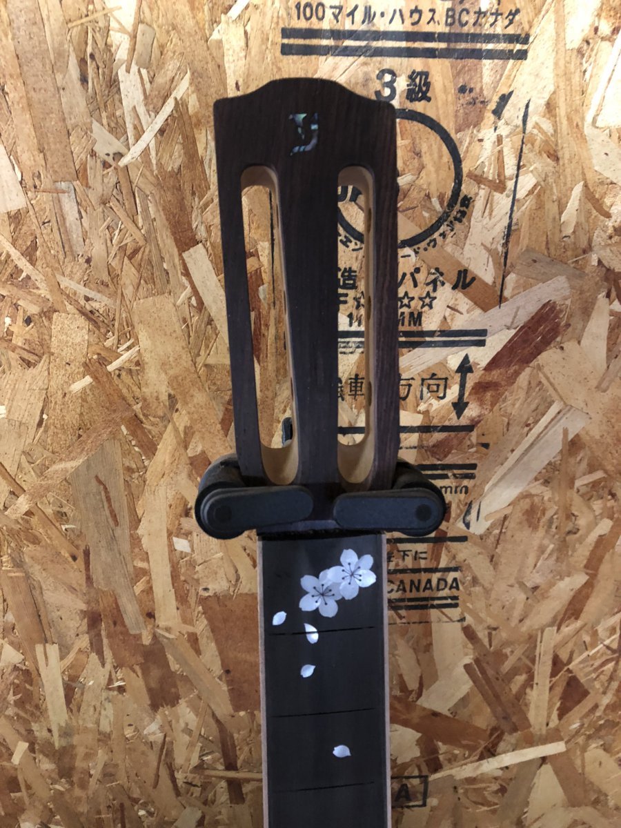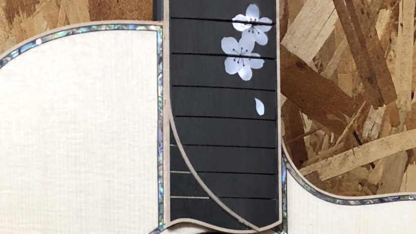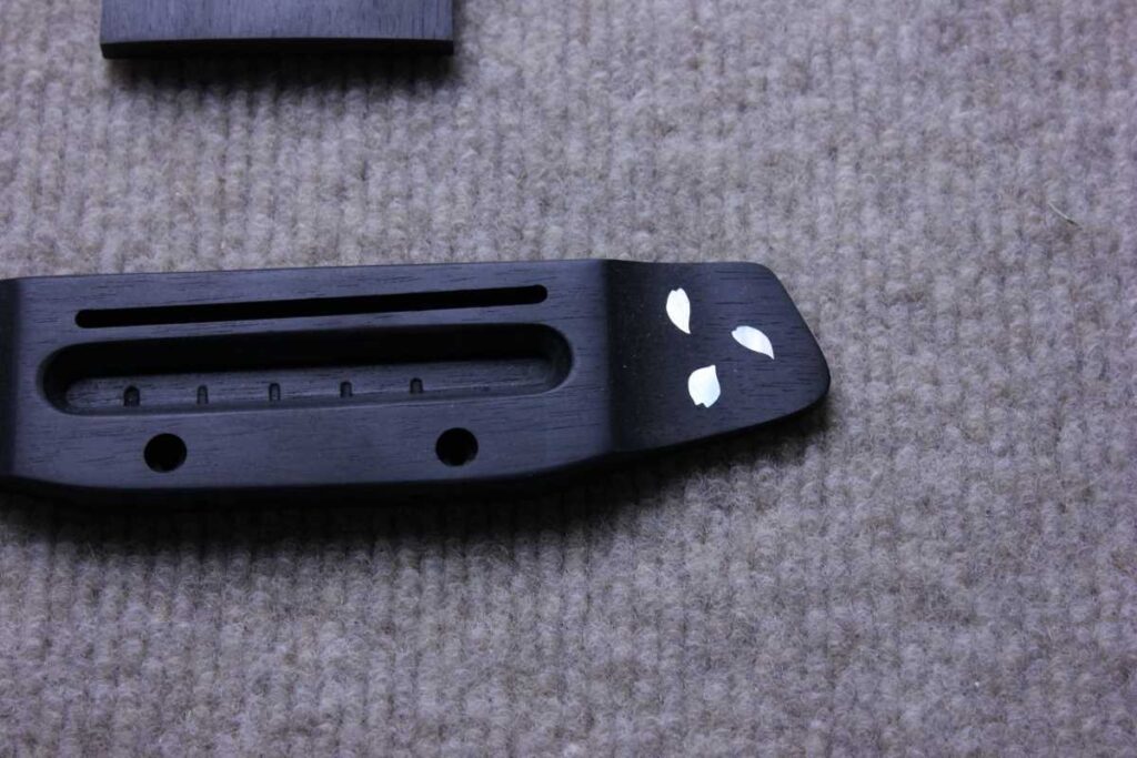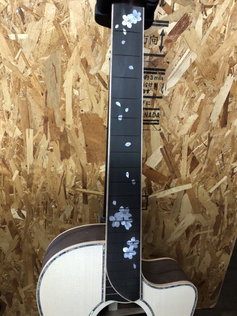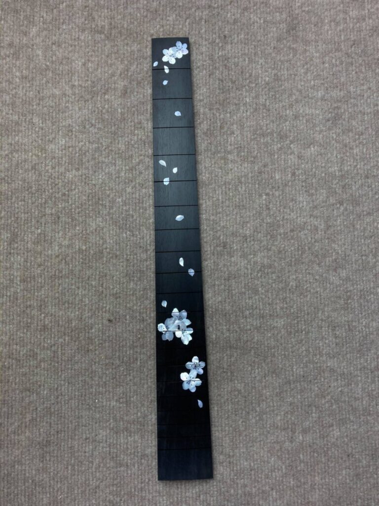 お客様からは「ポジションマークとして使えるようなインレイを」、それと「素材は貝で、モチーフは桜」といったリクエストでした。