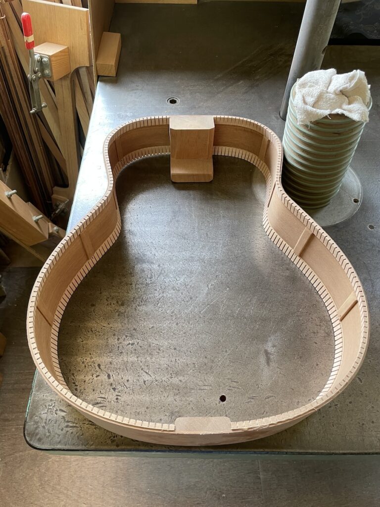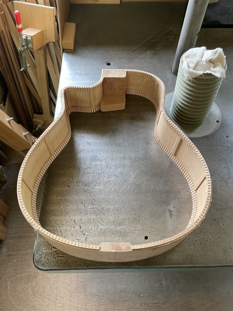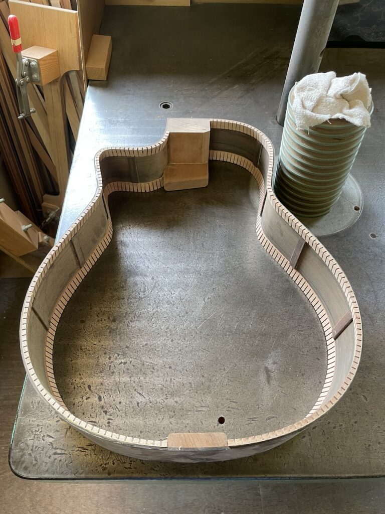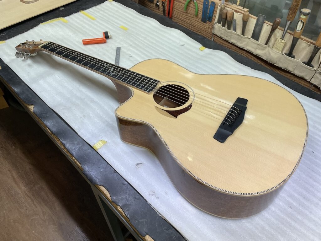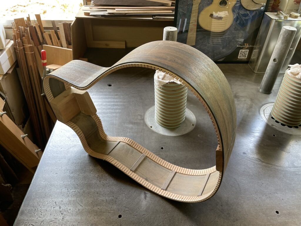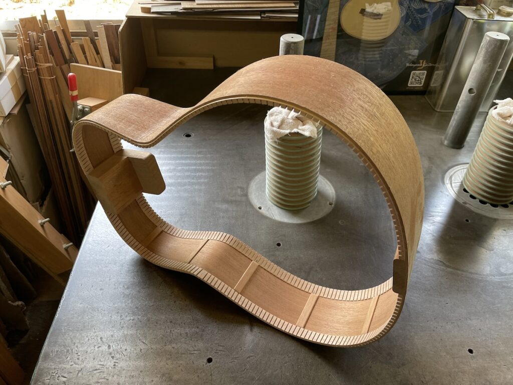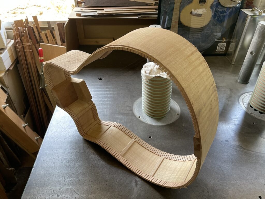色々とお試しいただいた結果、トップはイングルマンスプルース、バック&サイドはカマティロのARシェイプに決定。完成形をイメージしながら材料を選定していきます。