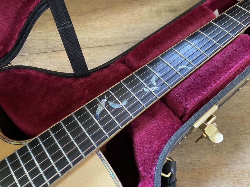 M様は、奥多摩のH様へのリスペクトを込めて、ヘッドのロゴマーク&ロゼッタ埋め込み材料に「もみぢ」を採用する事に。思いがけず、素敵な話ですね。