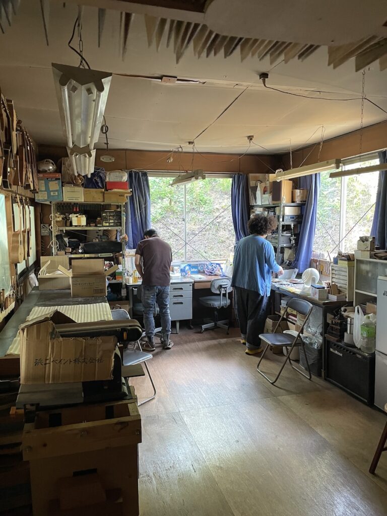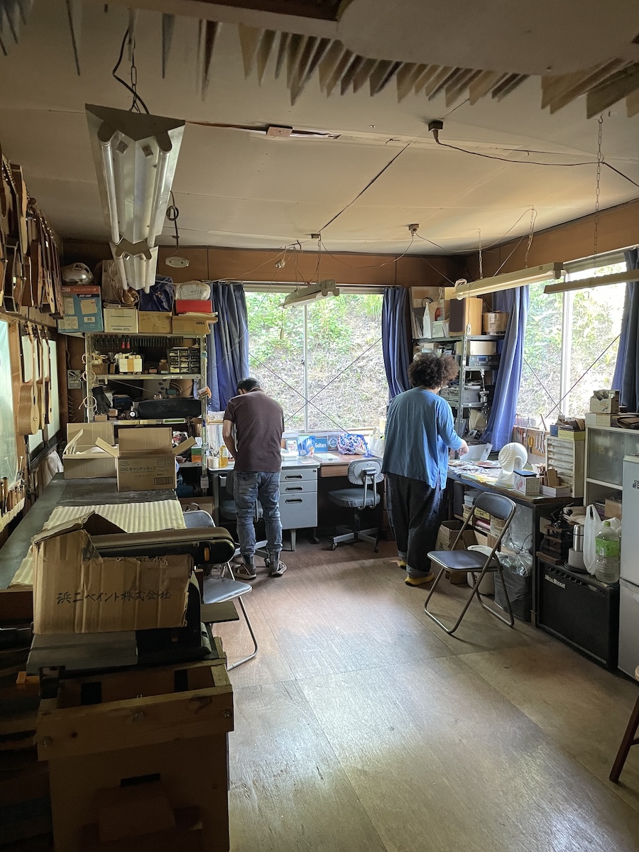 工房に到着するとTOKYO OFFICE号に大量積載したギターを降ろして、展示開始です。